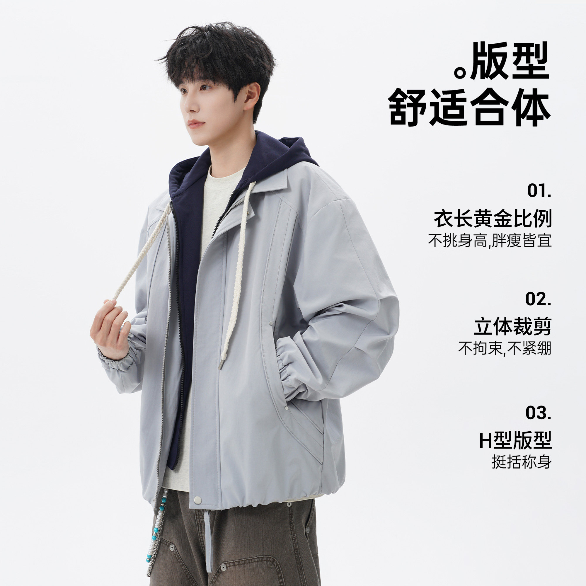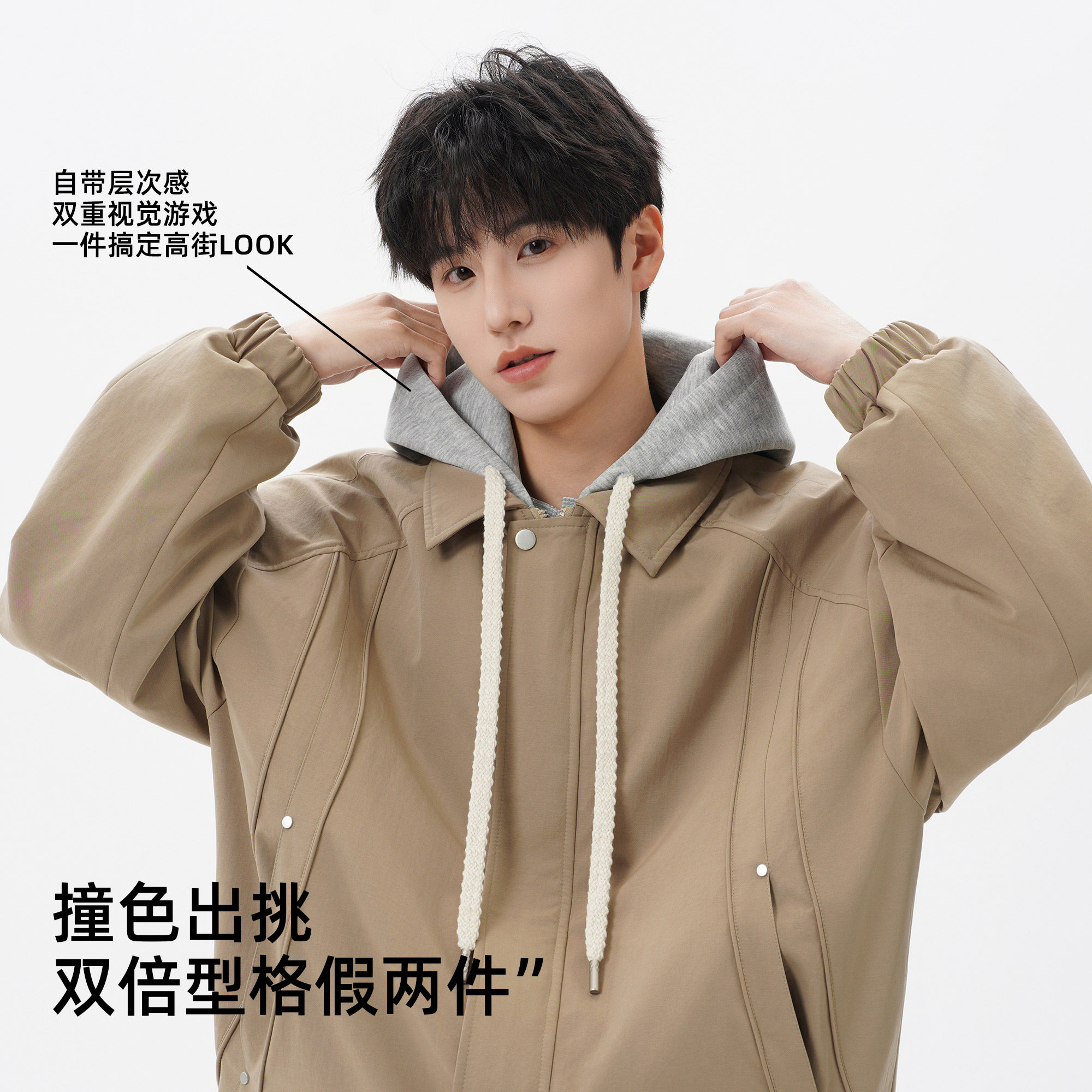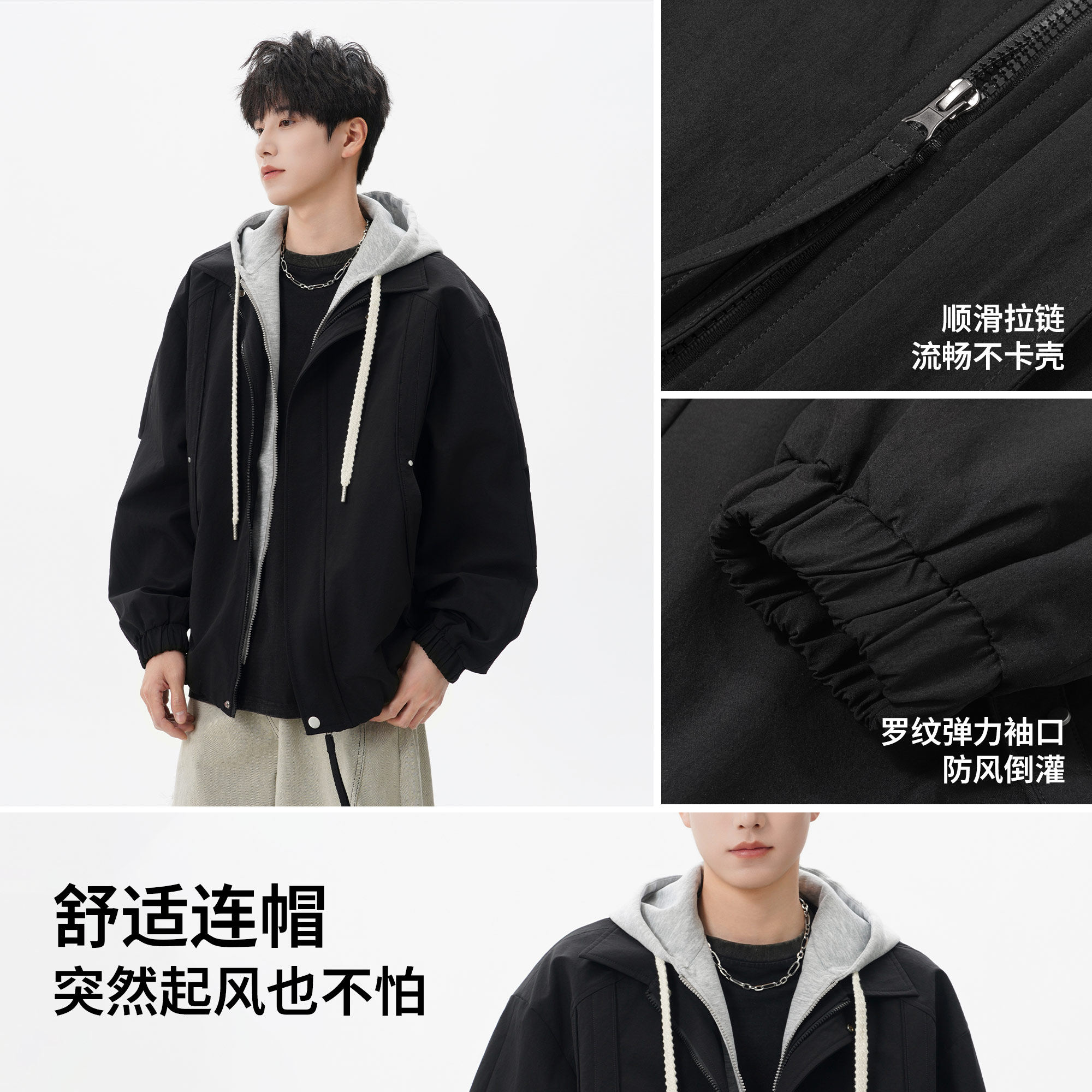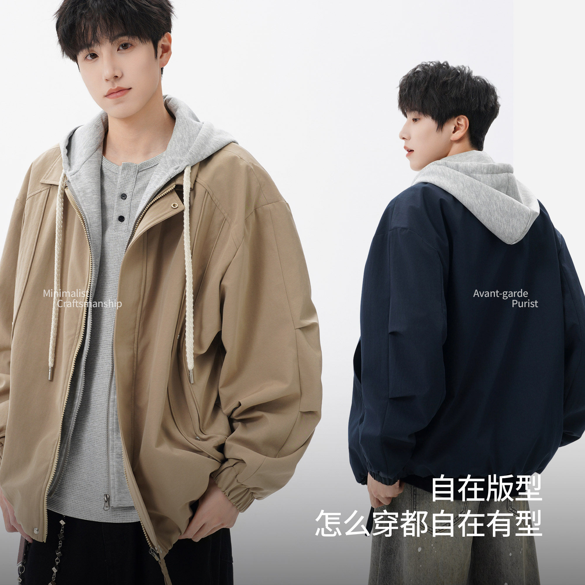淘宝迈特优日系假两件外套男春季新款青少年宽松廓形夹克男生棒球服潮