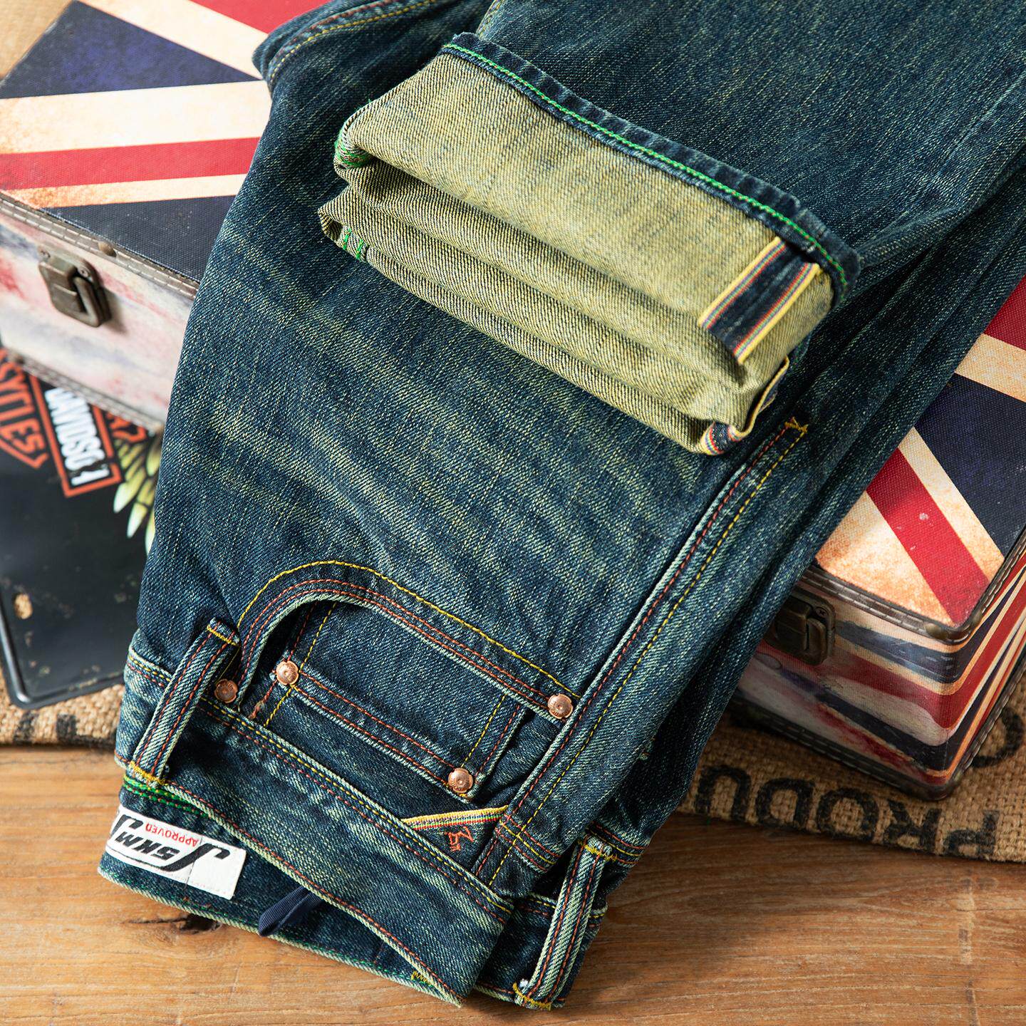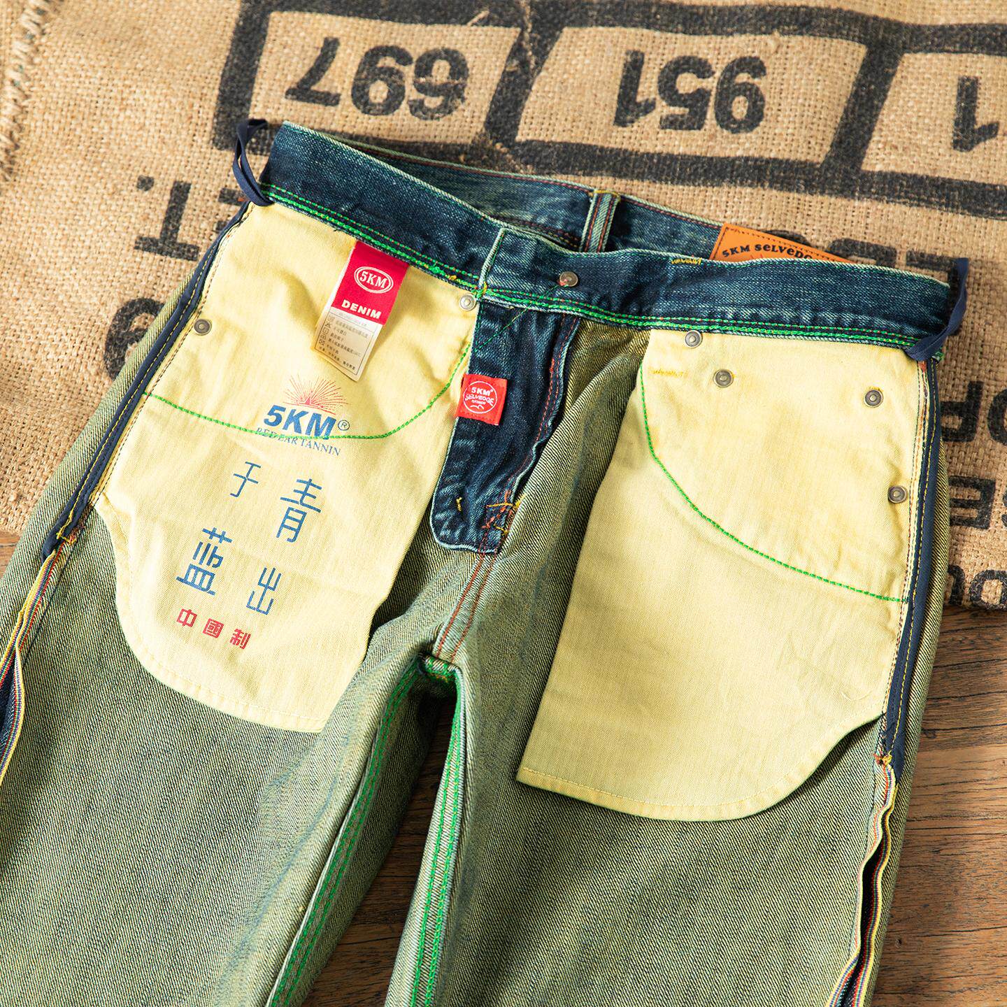 男士赤耳丹宁牛仔裤秋冬新款15盎司怀旧翡翠绿501宽松直筒裤