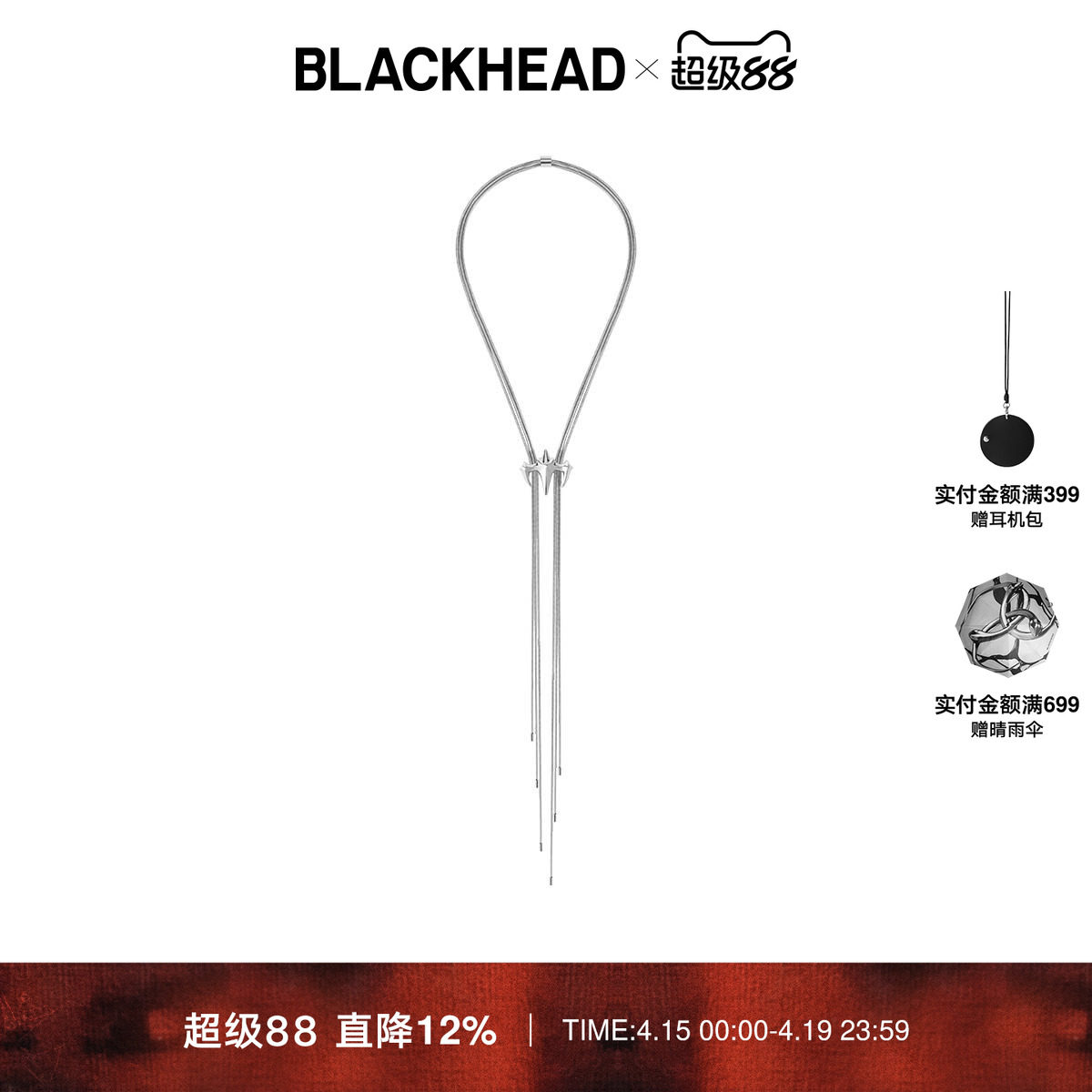 --------------------- 【文韬同款】BLACKHEAD/黑头叁蛇灵引系列蛇骨多链条抽拉项链 【原售价】599元 【现售价】527元 【推荐理由】