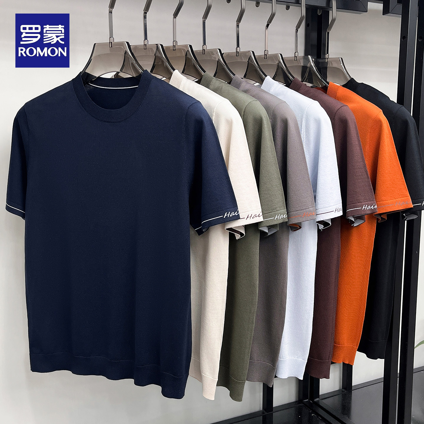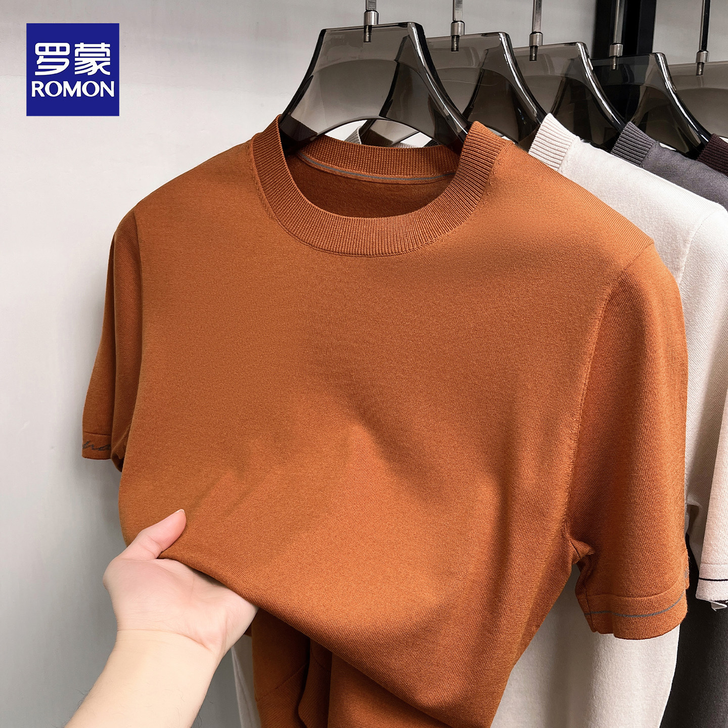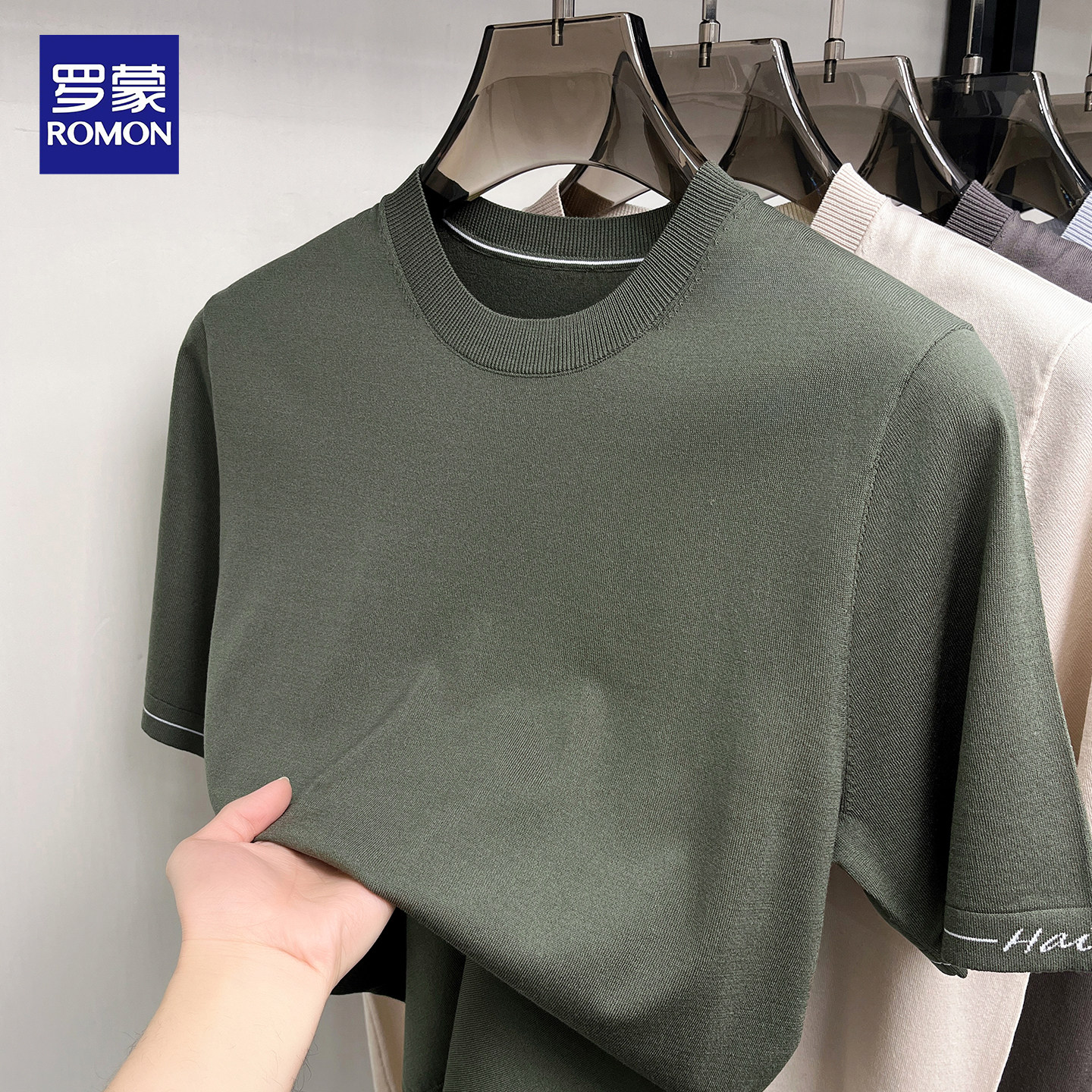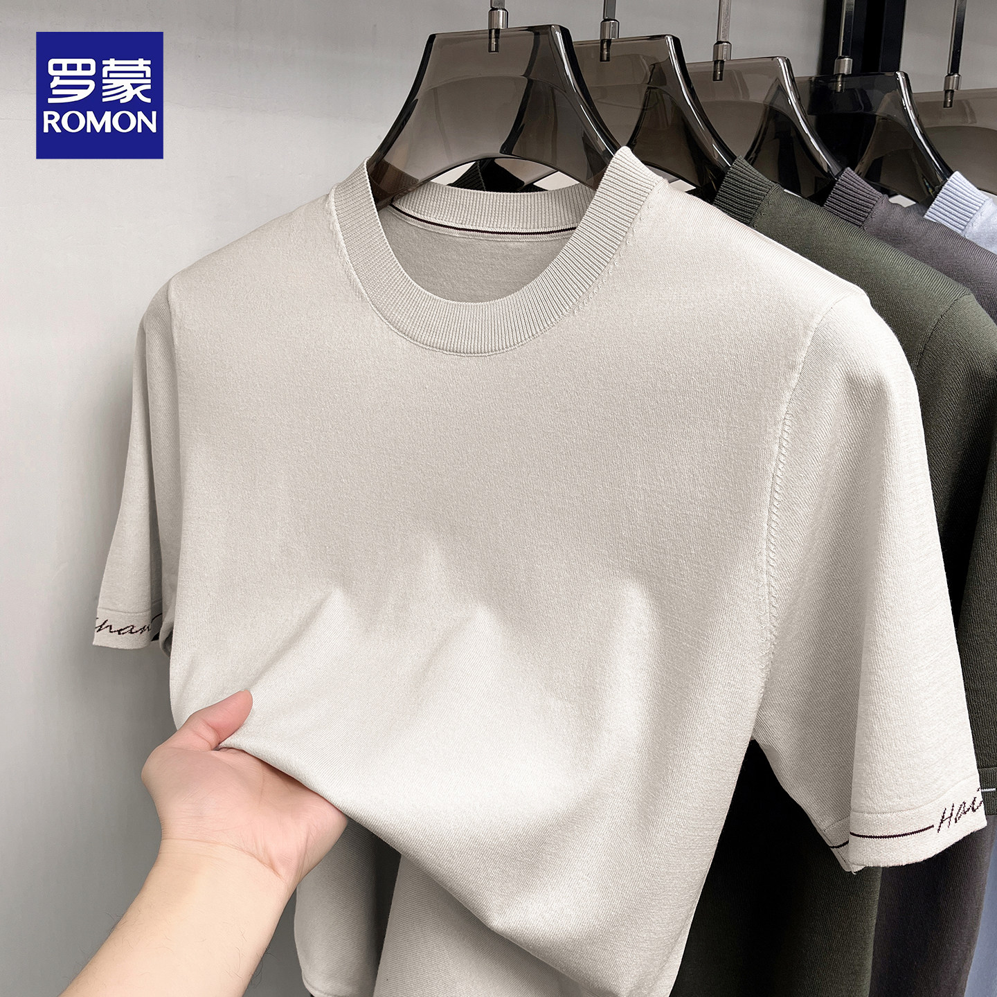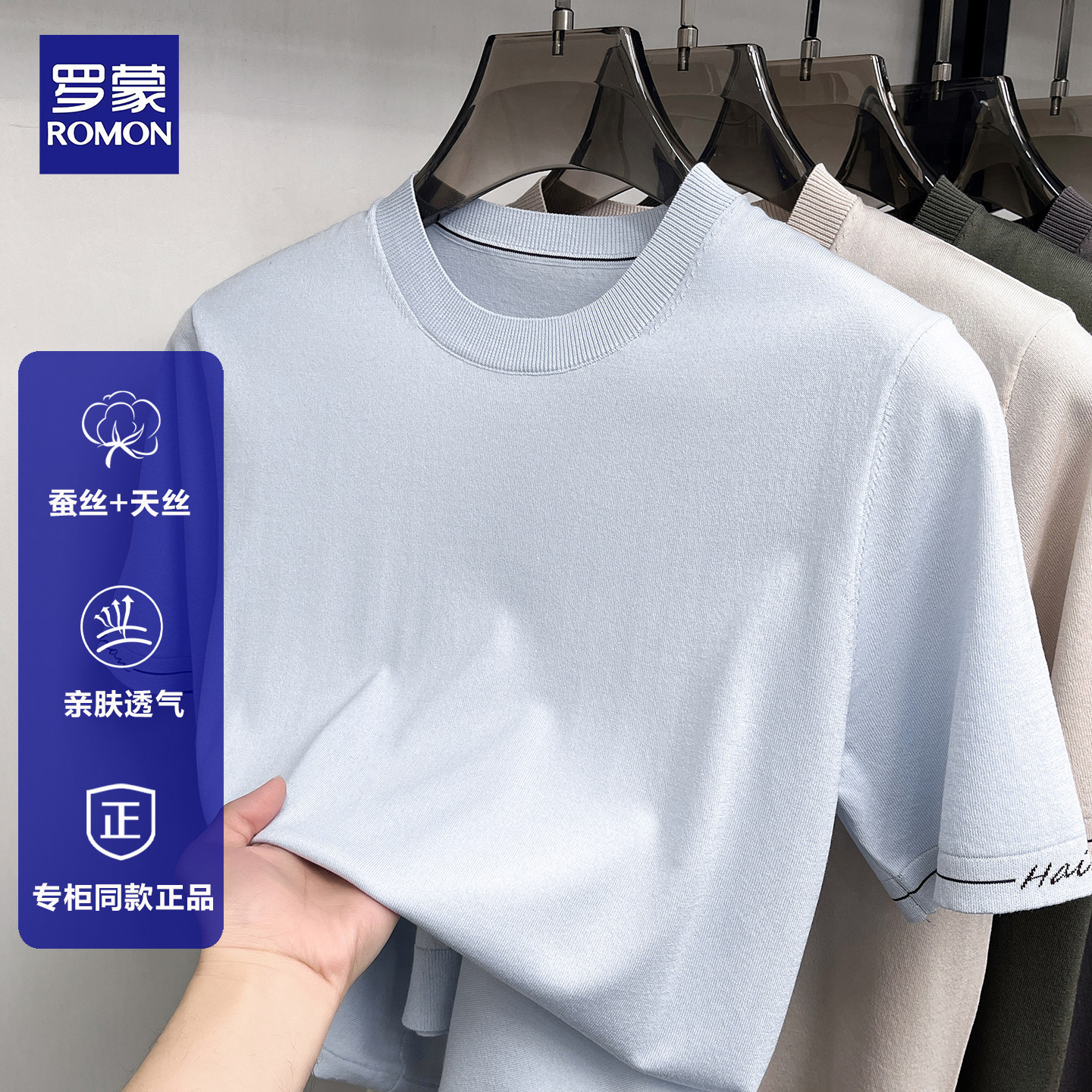 淘宝罗蒙2026春夏新款男士短袖T恤桑蚕丝纯色宽松内搭亚麻针织打底衫
