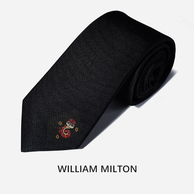 WILLIAM MILTON国潮蛇来运转刺绣真丝领带男士高端商务正装礼盒装