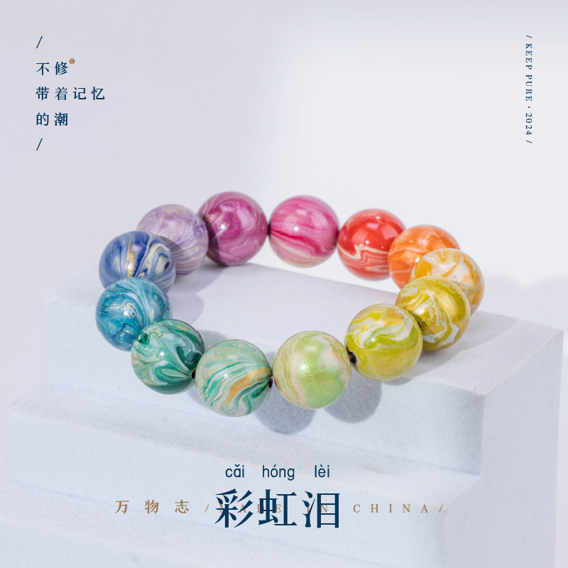 [不修·彩虹泪]纯手工国潮非遗手链大漆珠判官手串定制配饰文玩