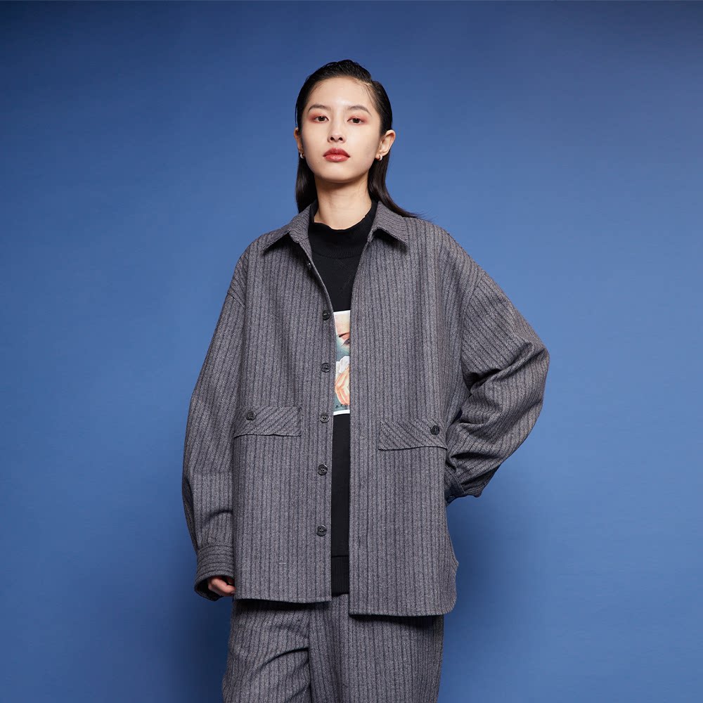 淘宝【349元任选3件】古着复古国潮人字纹羊毛呢夹克翻领外套男