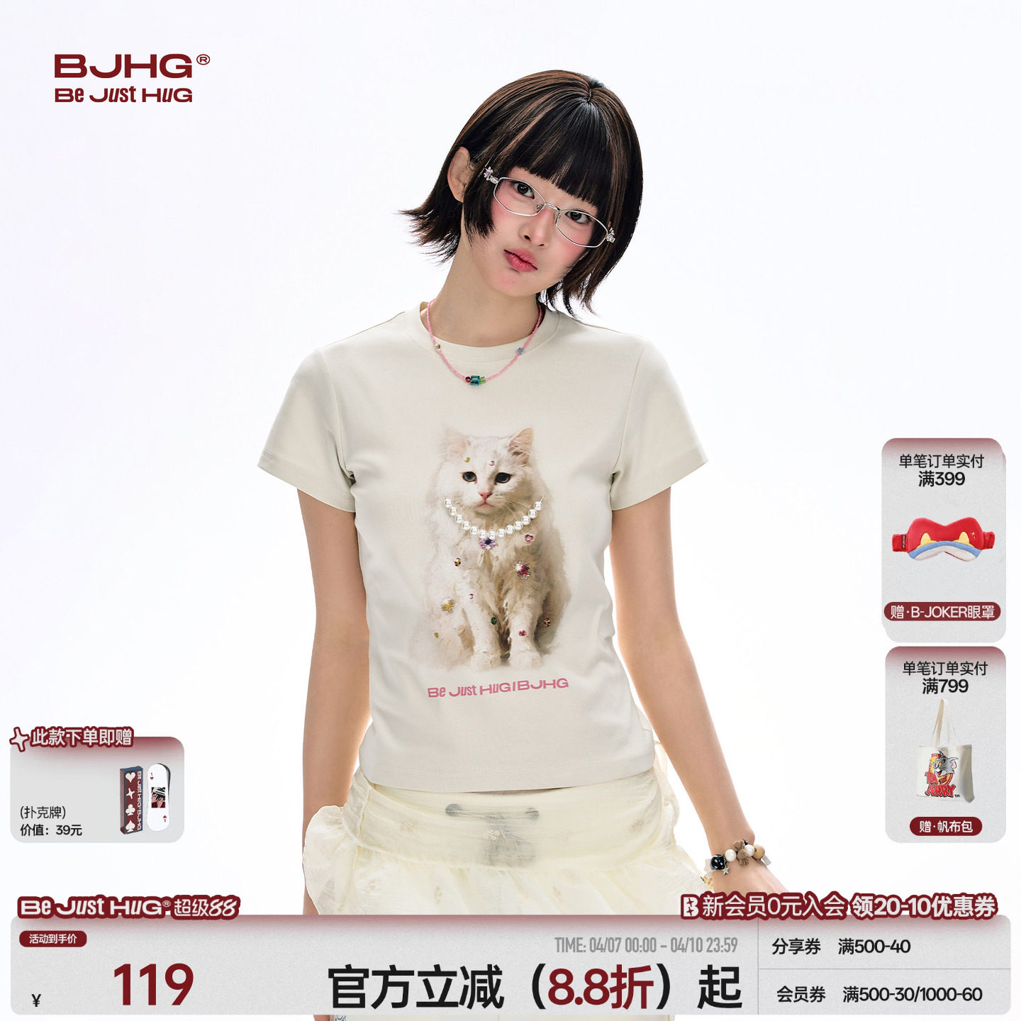 --------------------- BJHG不计后果 设计感小猫短袖t恤女夏季修身上衣潮牌凉感正肩半袖 --------------------- --------------------- 【原价】139元 【券后价】109元