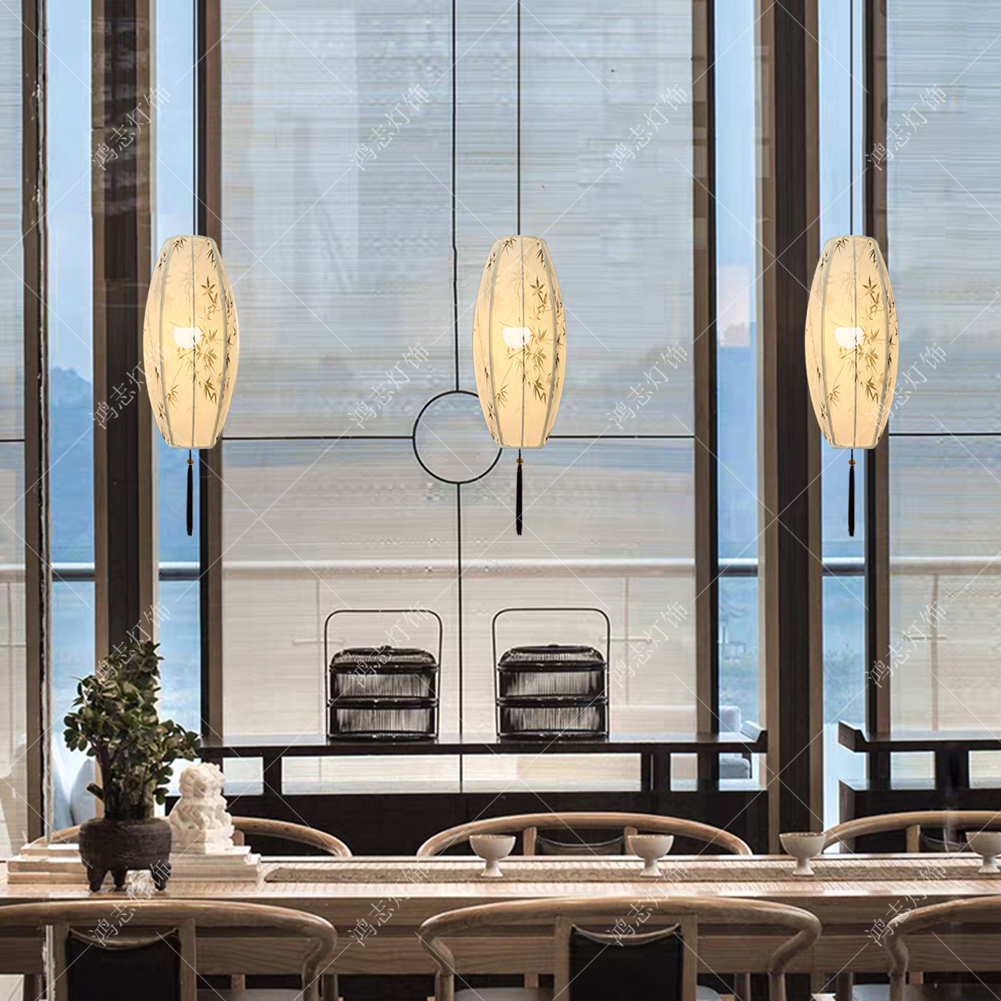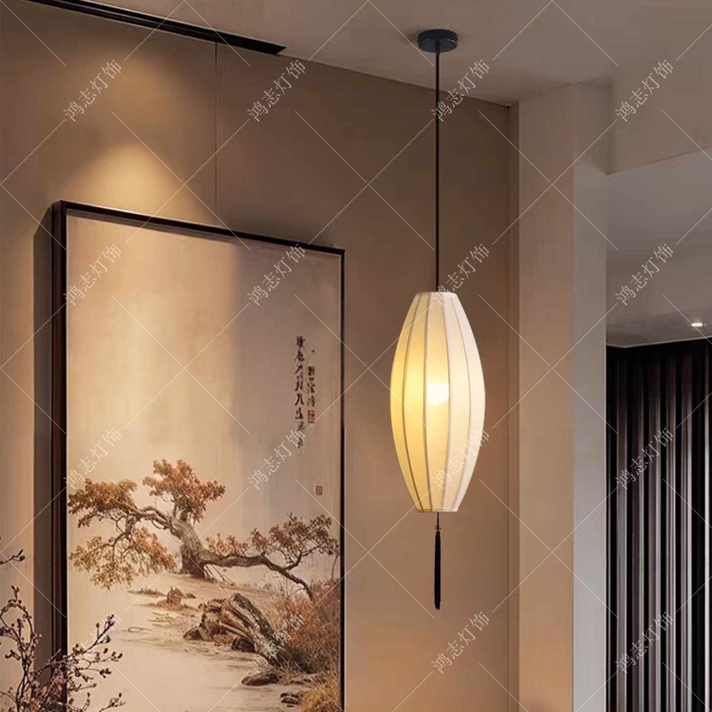 新中式布艺吊灯国风茶茶室走廊过道引路灯宋式美学餐厅玄关床头灯