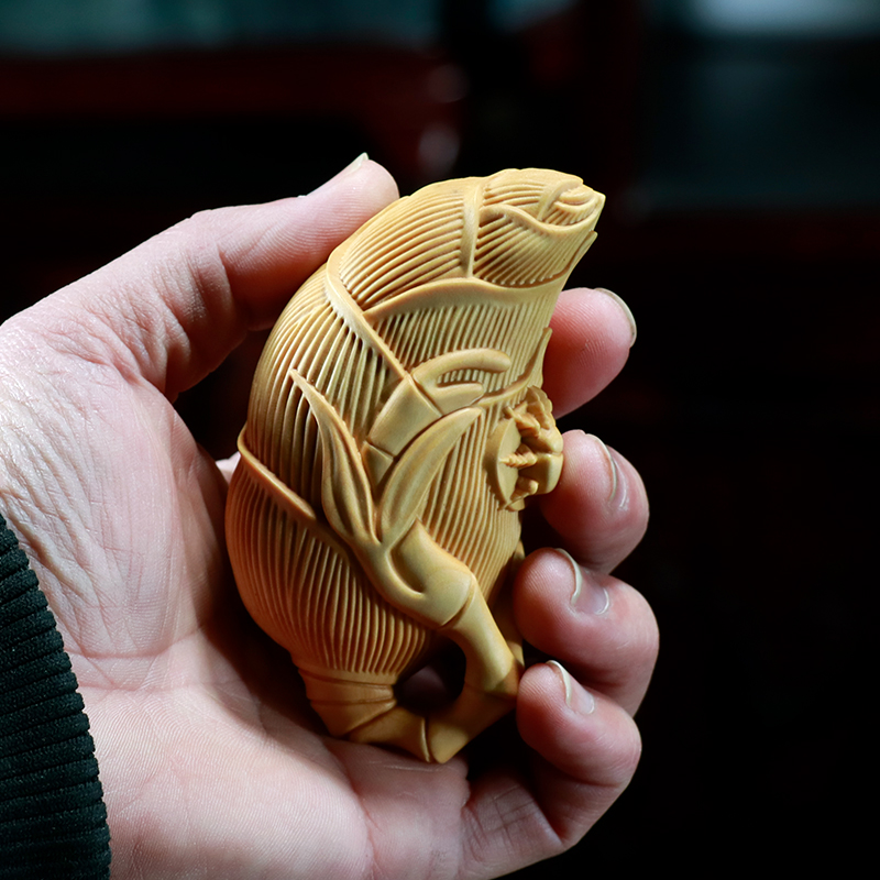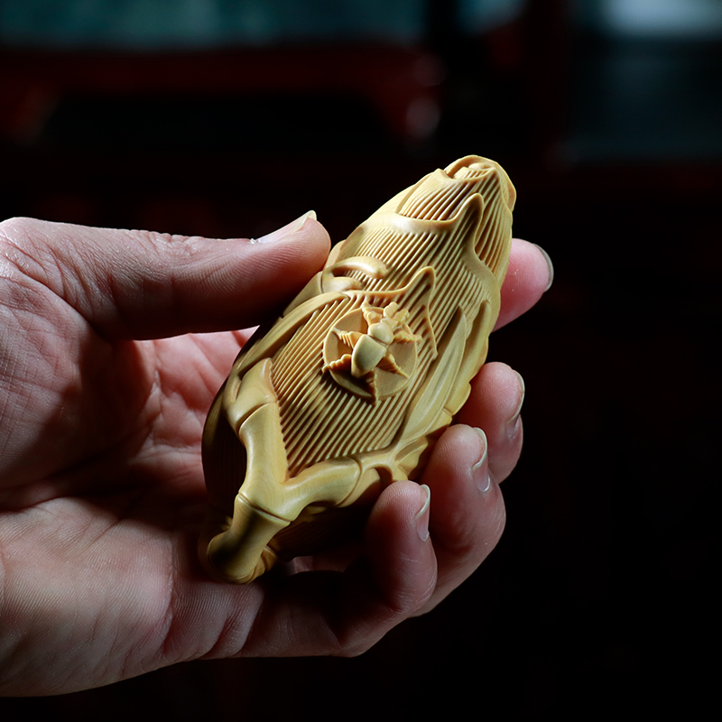 黄杨木雕竹笋茶壶摆件知足常乐文玩手把件男士把玩木质随身把把壶