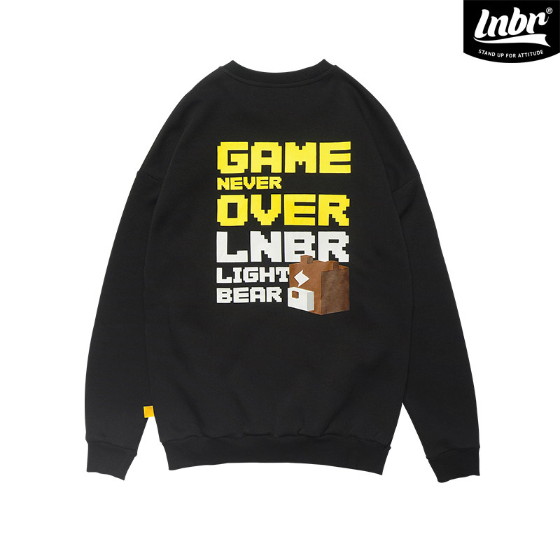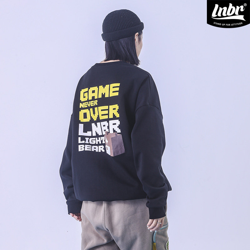 LNBR原创秋冬“game never over"印花黑色套头卫衣男女大码潮