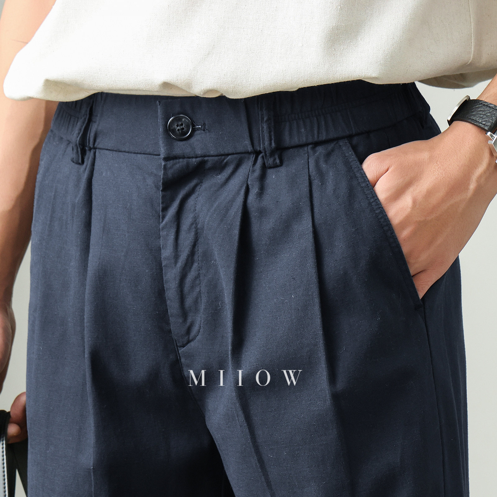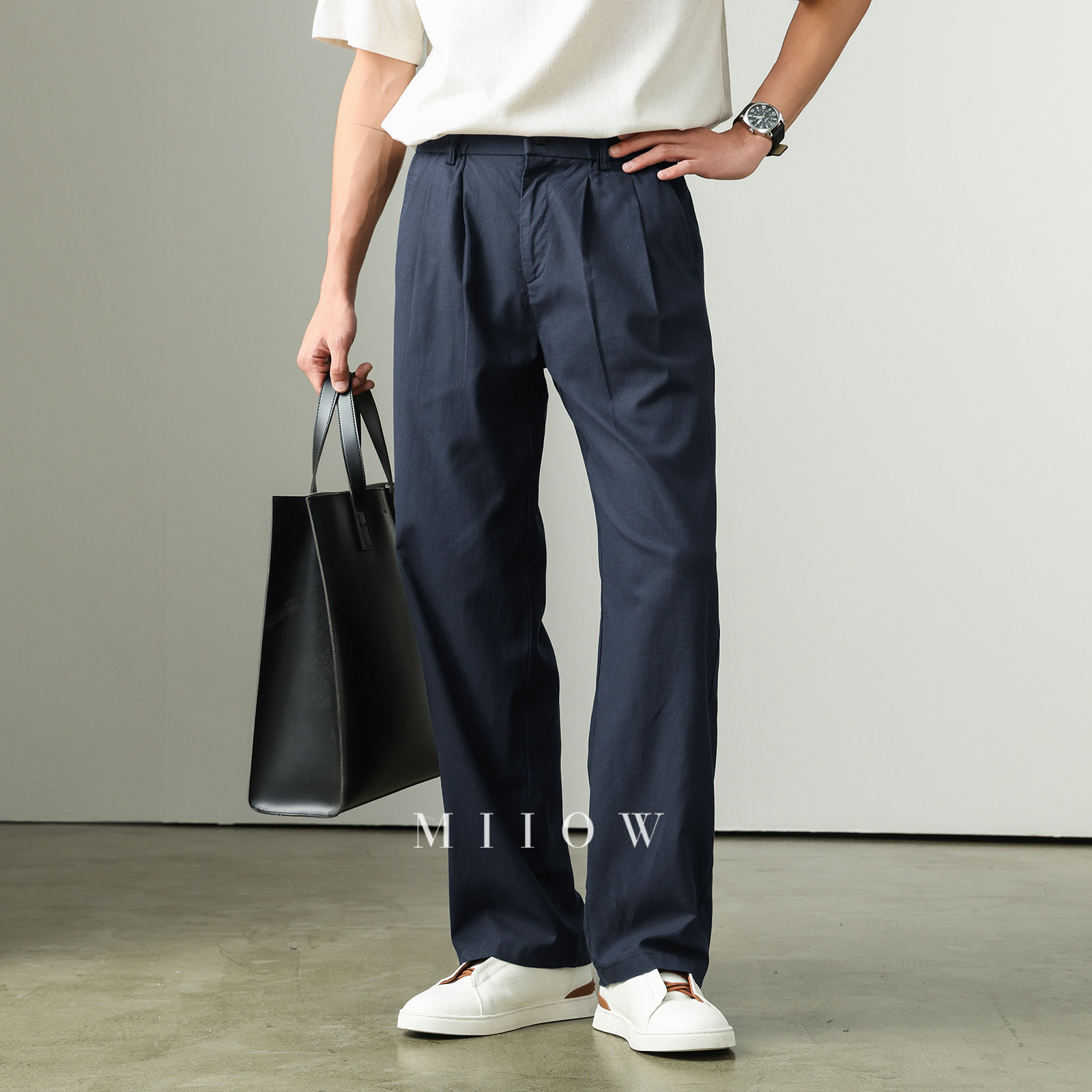 高端莱赛尔天丝直筒休闲裤男夏季新款透气亚麻百搭宽松通勤长裤子