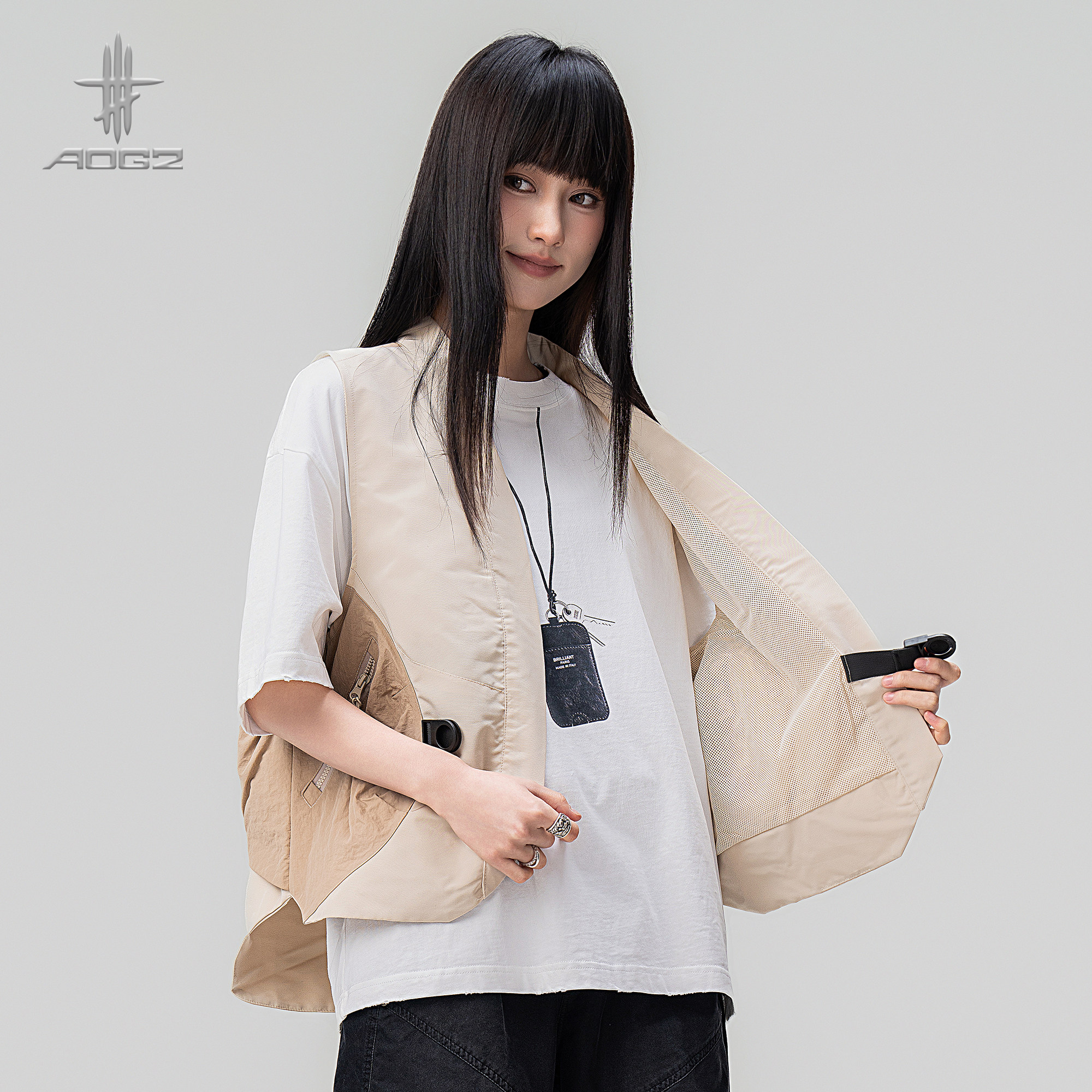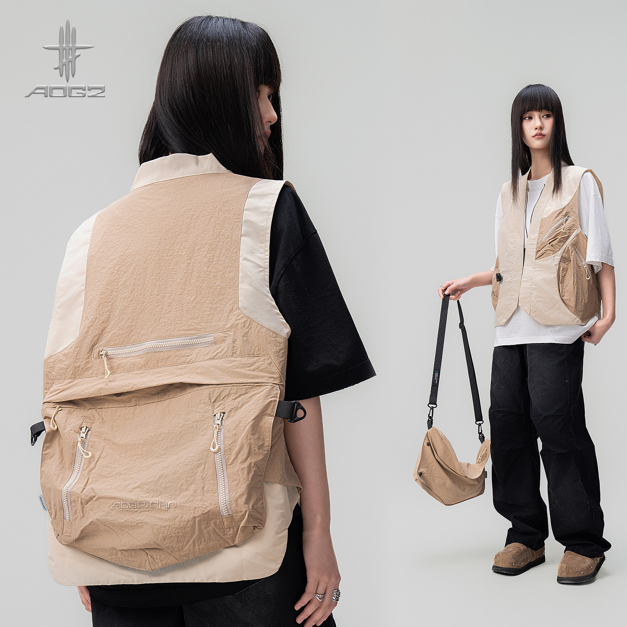 AOGZ可拆卸背包多功能马甲男女2026春夏季新款解构拼色坎肩背心潮