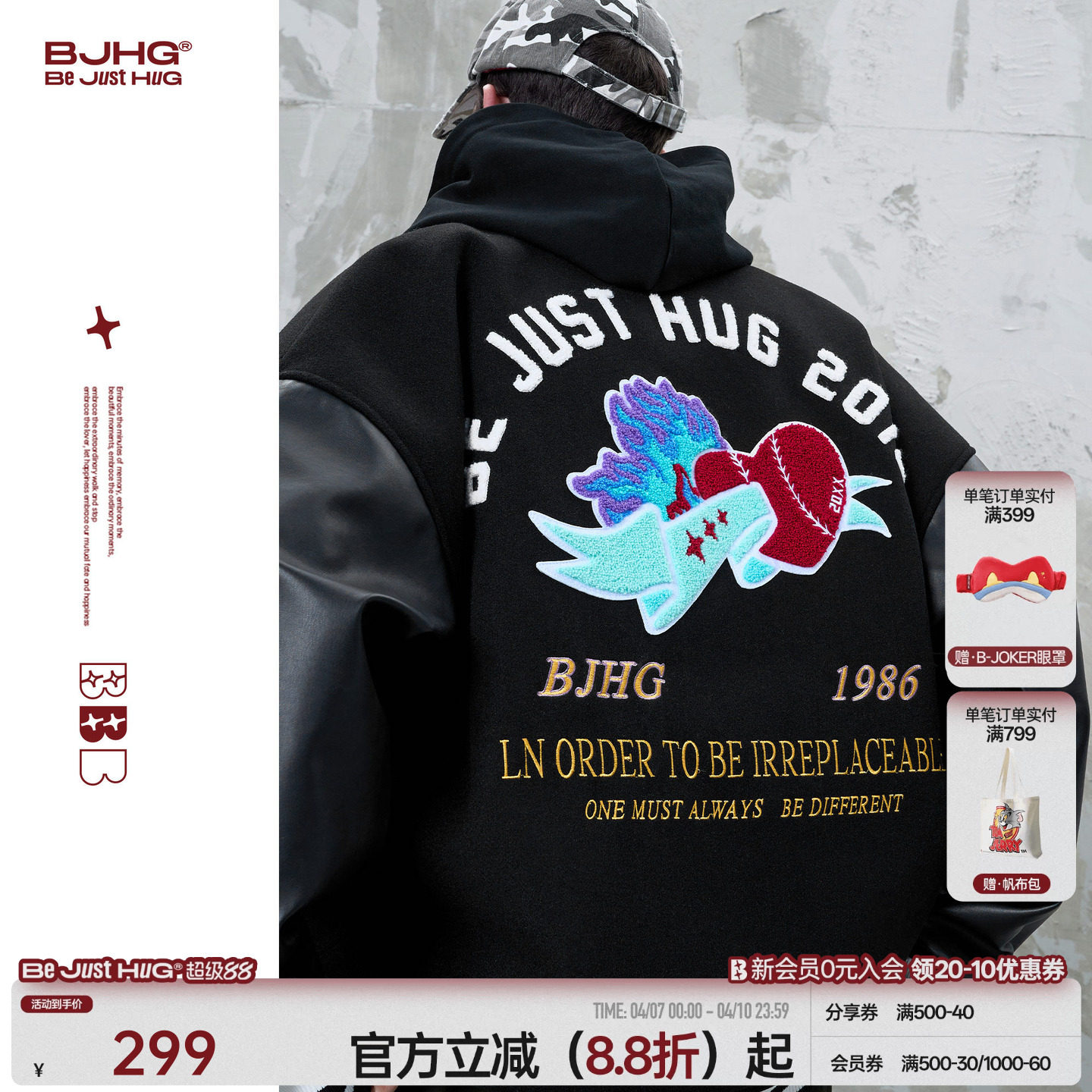 --------------------- BJHG不计后果新款棒球服外套男女款春运动夹克重磅美式复古棒球服 【原售价】349元 【现售价】299元 【推荐理由】