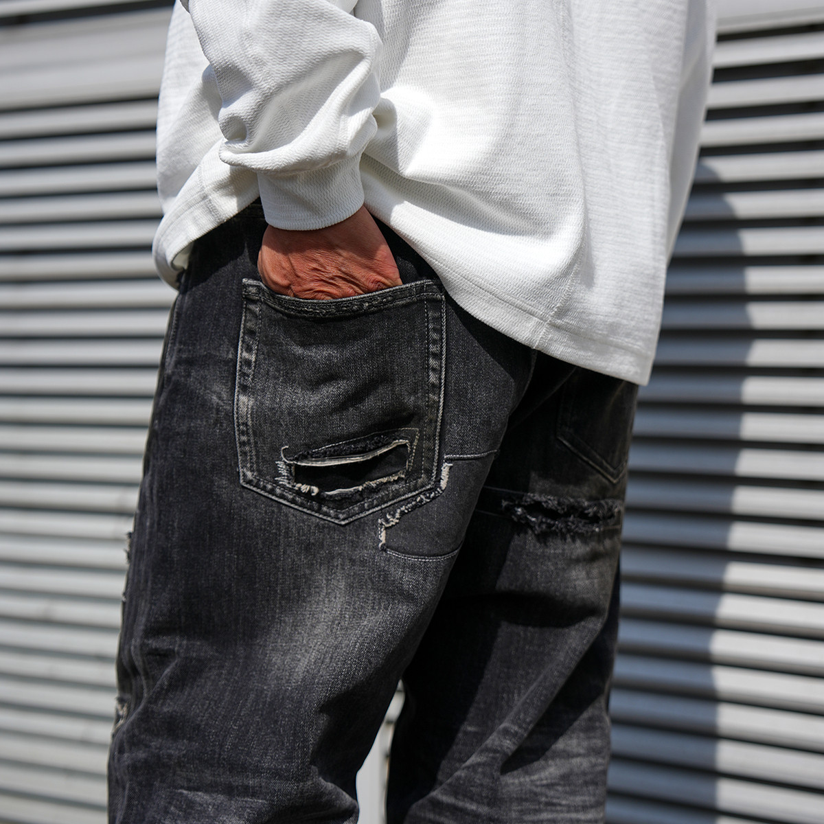 LAP DISTRSSED SELVEDGE OIL-DENIM油污破坏补丁日本面料牛仔裤