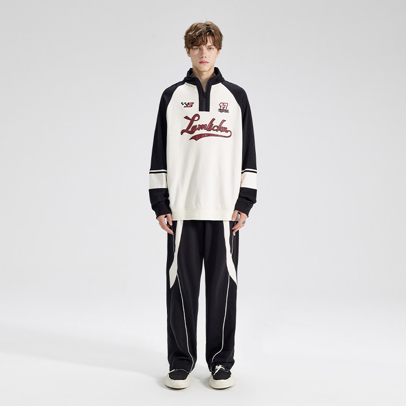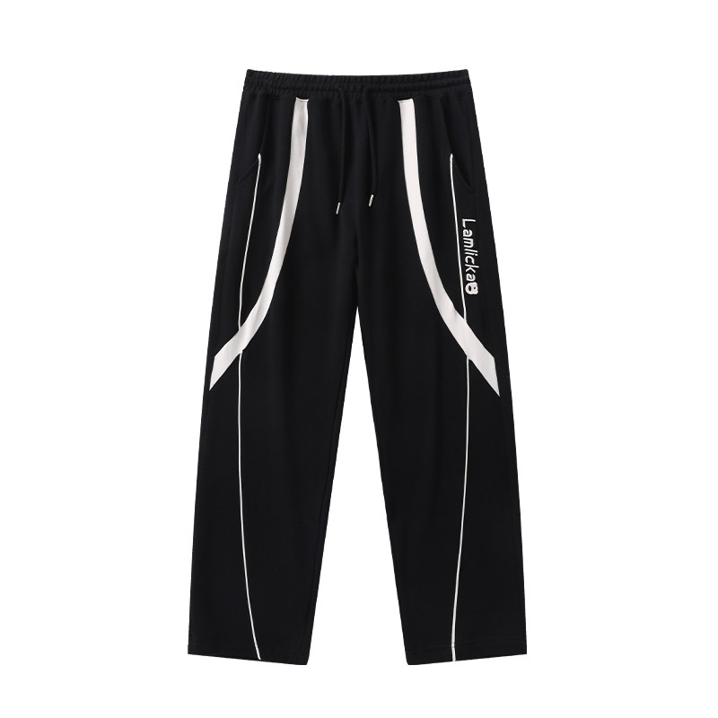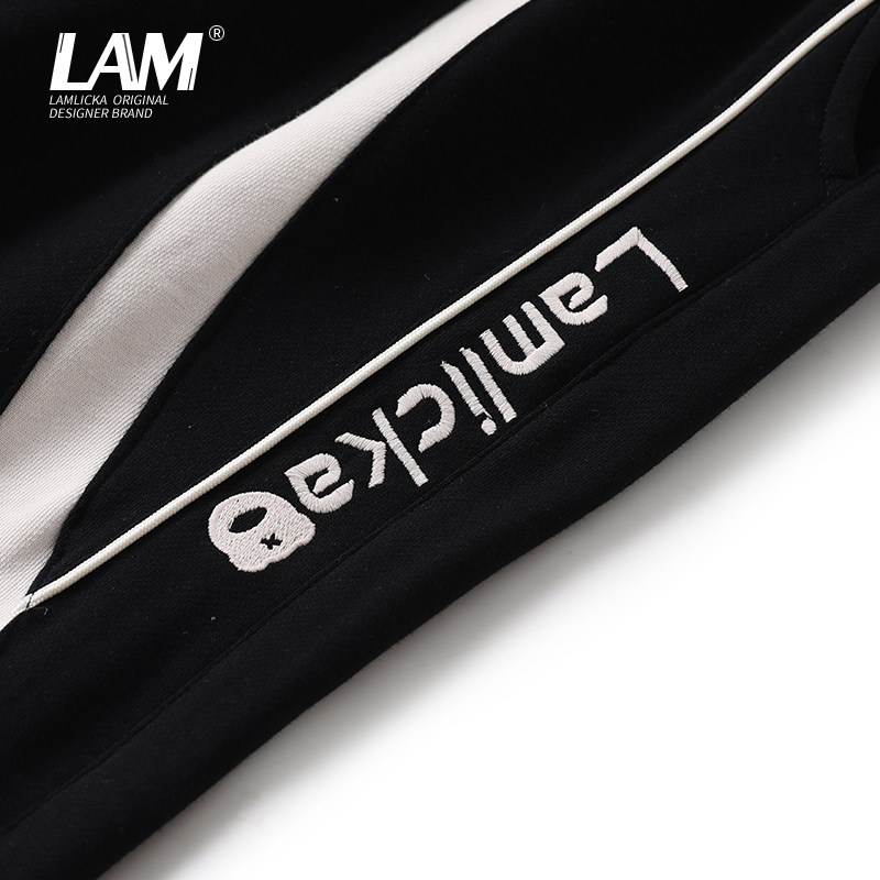 LAMLICKA LAM国潮宽松字母拼接撞色阔腿休闲裤男秋潮牌直筒拖地裤