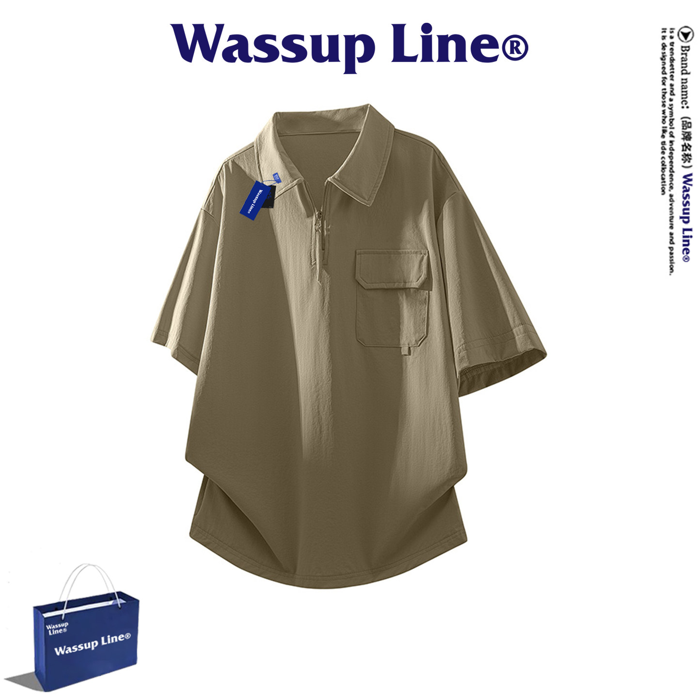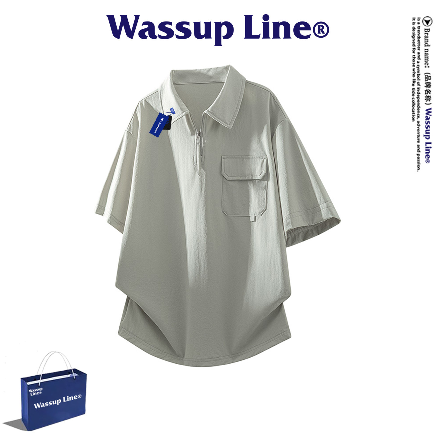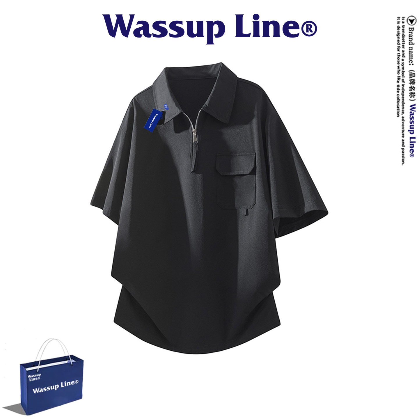 --------------------- WASSUP Line潮牌休闲短袖T恤男夏季运动户外速干半开拉链翻领上衣 【原售价】398元 【现售价】77.4元 【推荐理由】