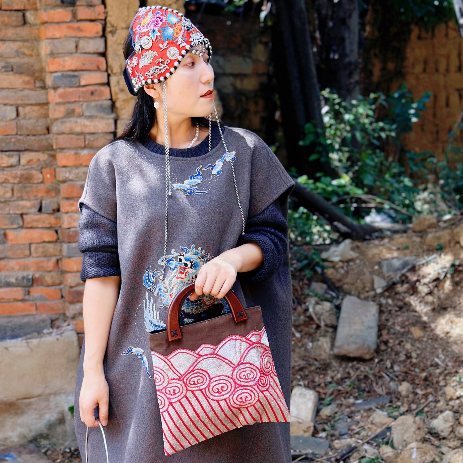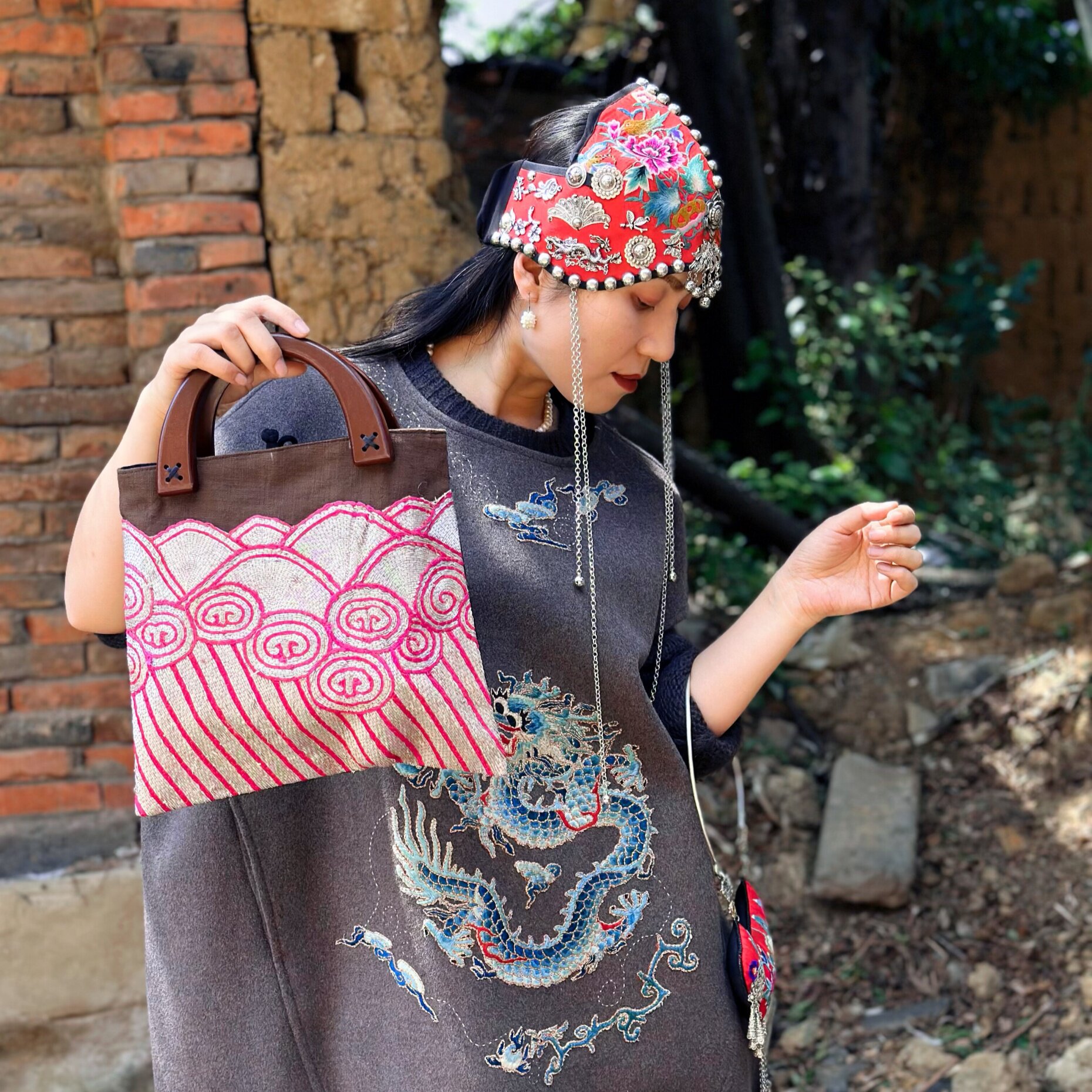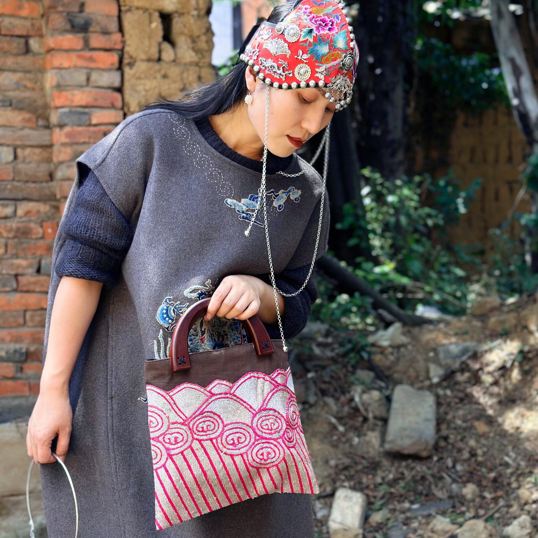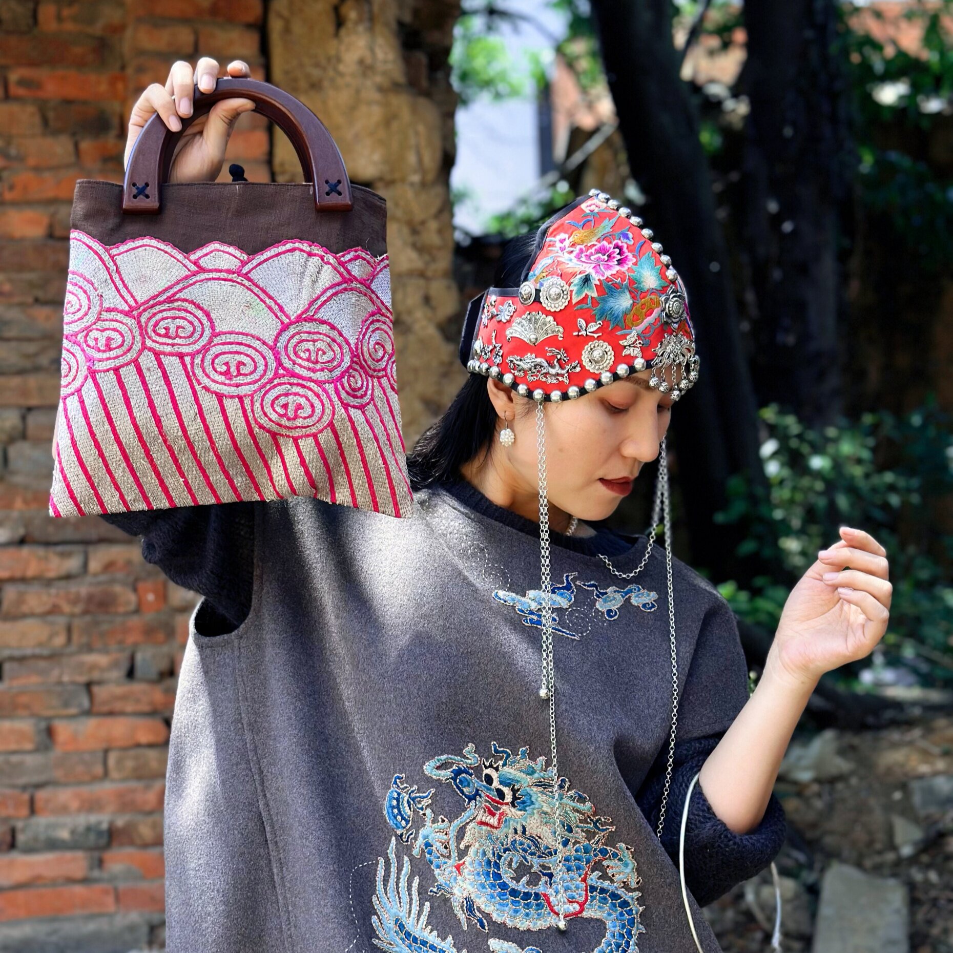 --------------------- 民族风老绣木手柄包包 海水纹老绣手提包 新中式盘金绣手提包 【原售价】380元 【现售价】380元 【推荐理由】