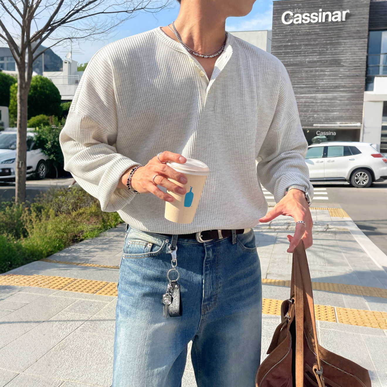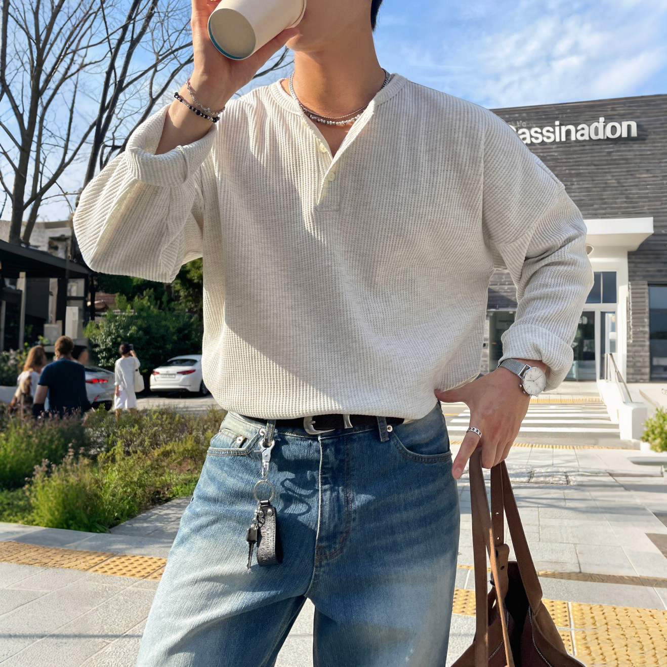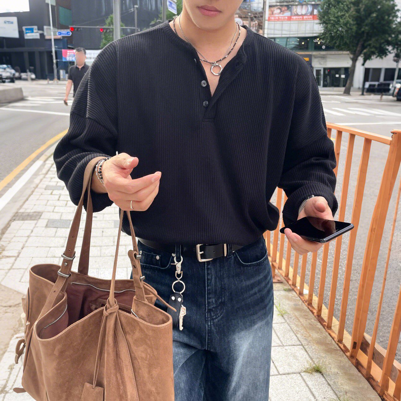--------------------- MRCYC老钱风亨利领长袖T恤男士2026春季新款宽松通勤上衣韩系穿搭 【原售价】78元 【现售价】68.6元 【推荐理由】