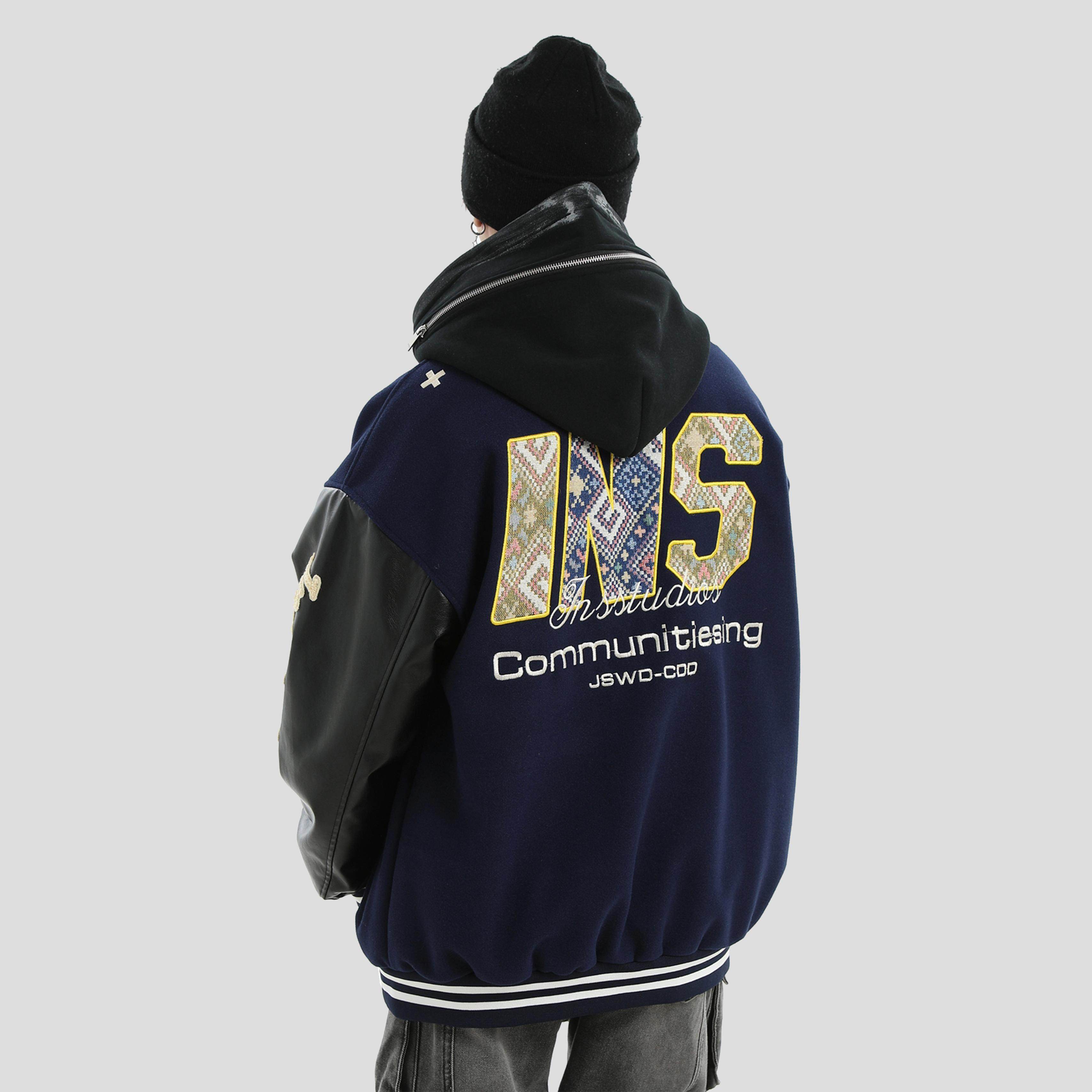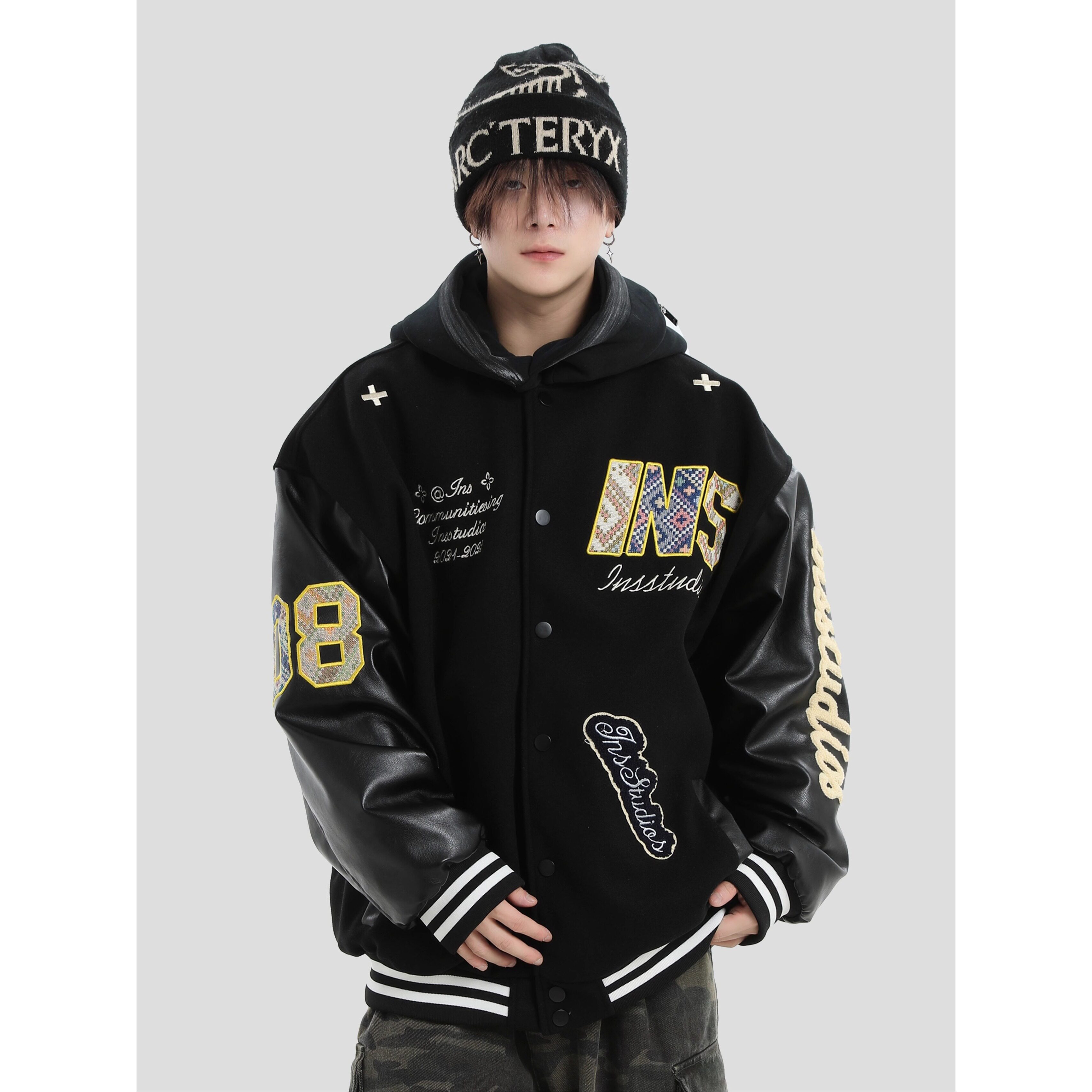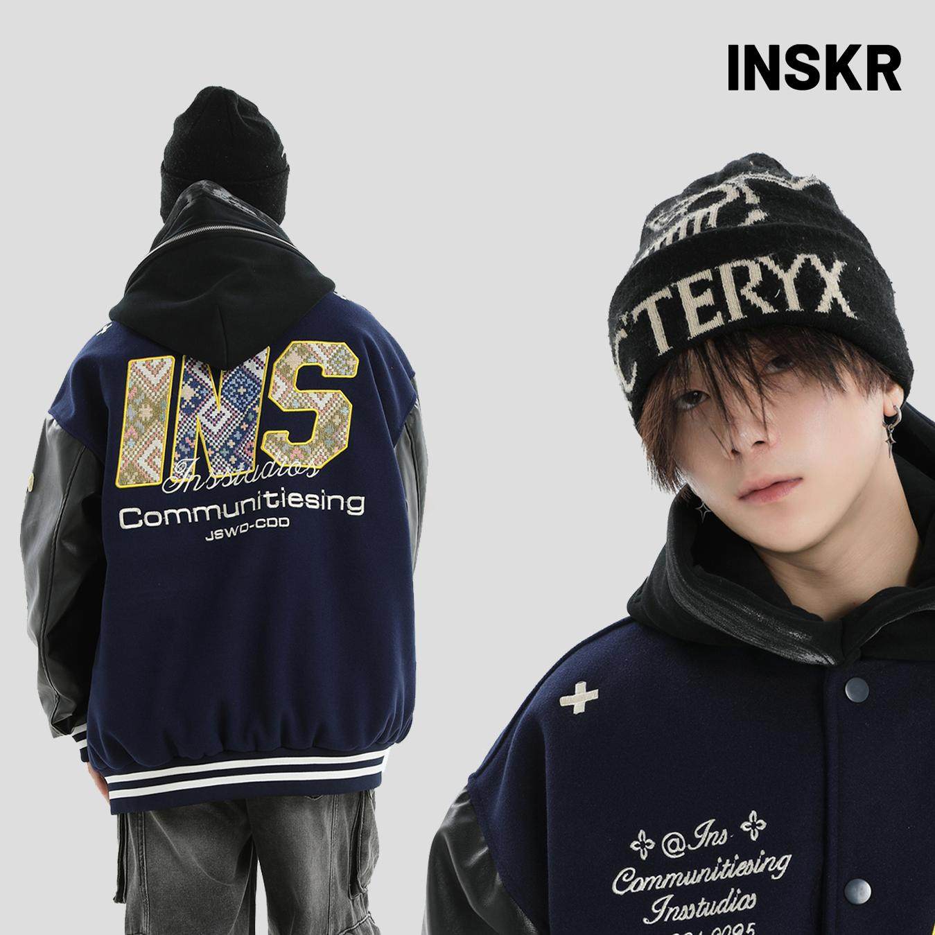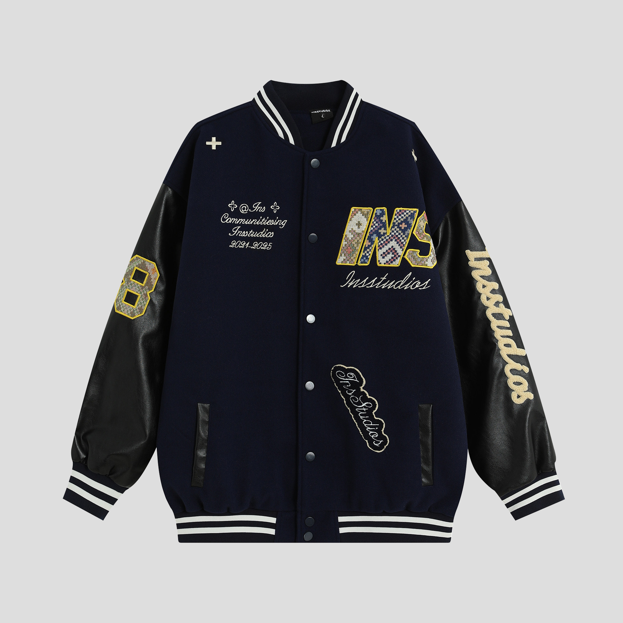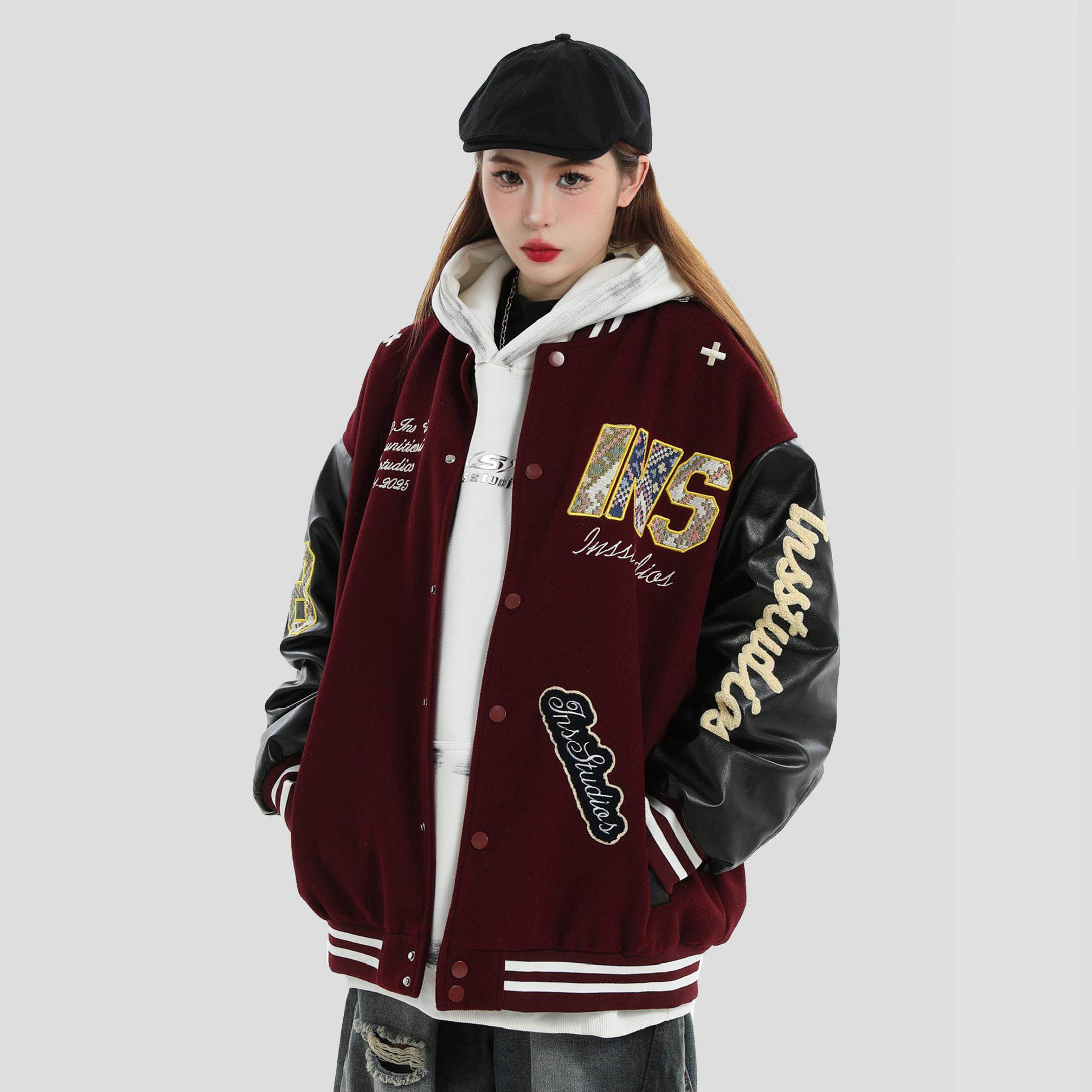 【INSKR】国潮牌情侣美式编织贴布刺绣LOGO棒球服夹棉夹克外套男