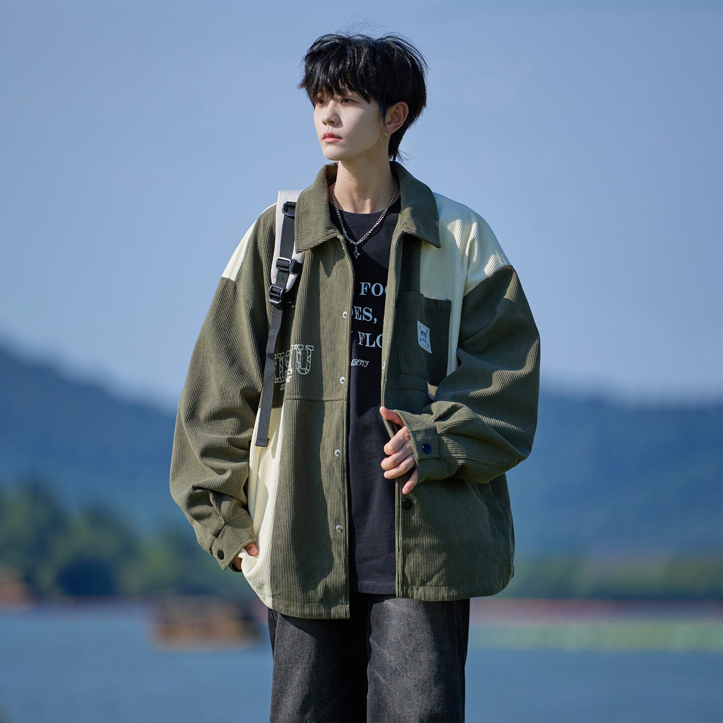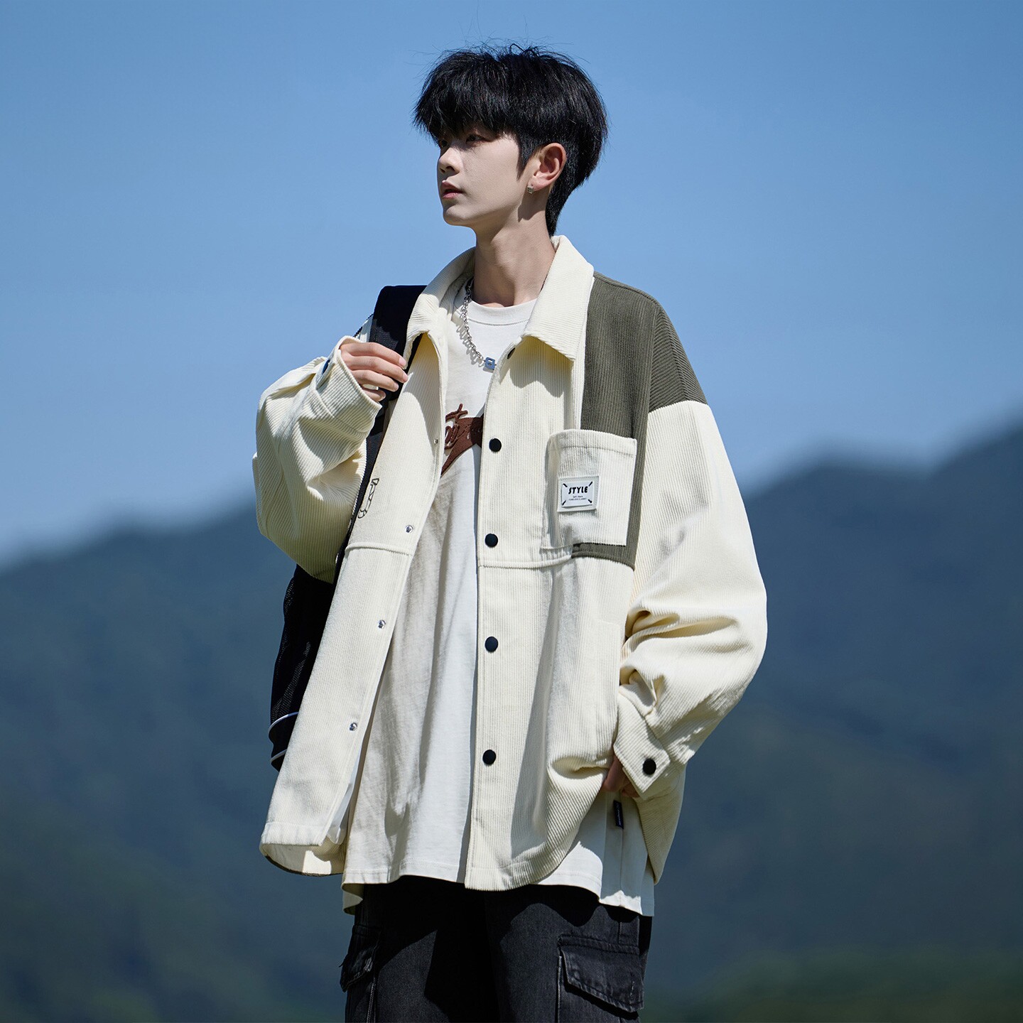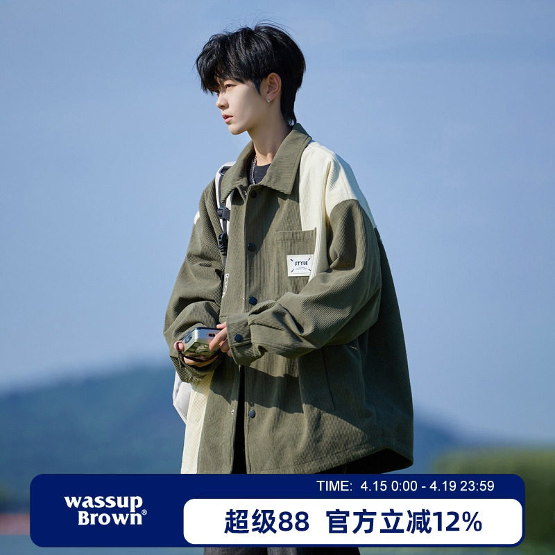 WASSUP BROWN美式翻领外套男春季新款撞色青少年男生休闲夹克衫