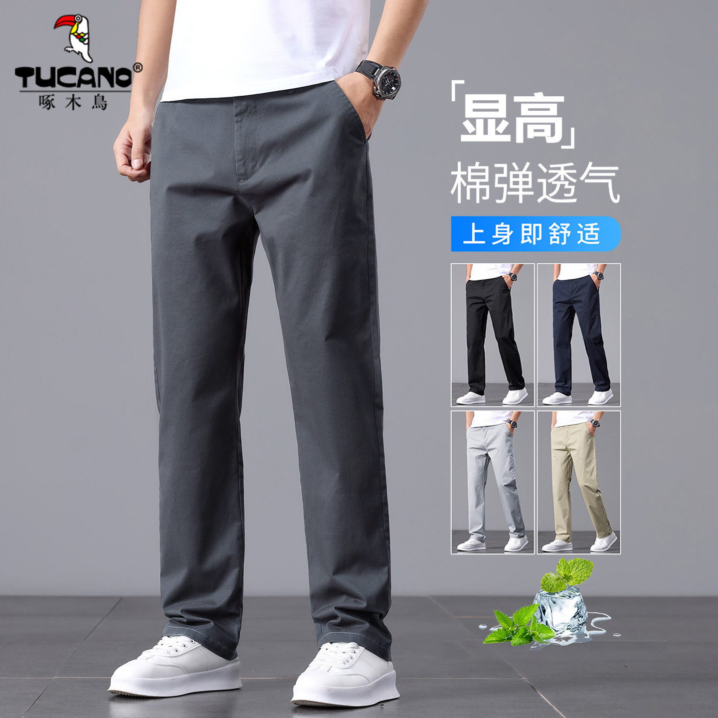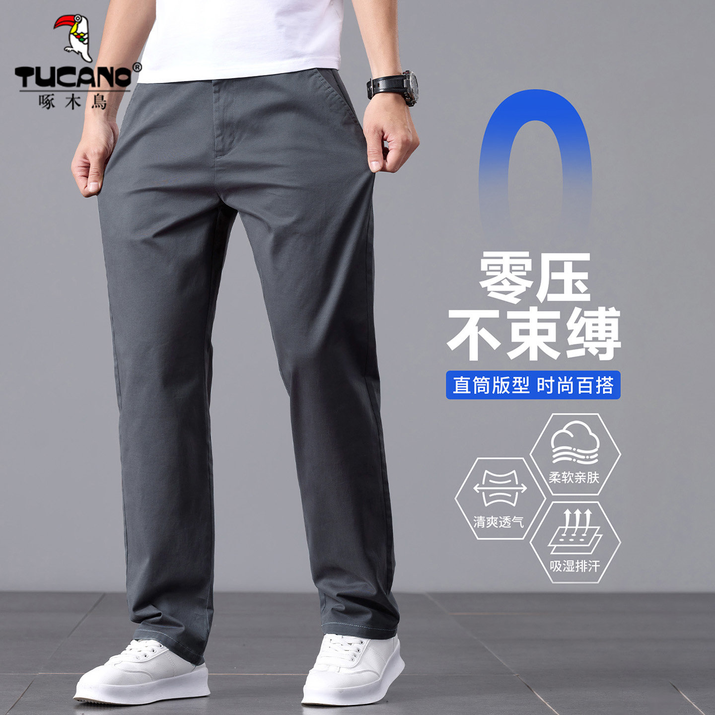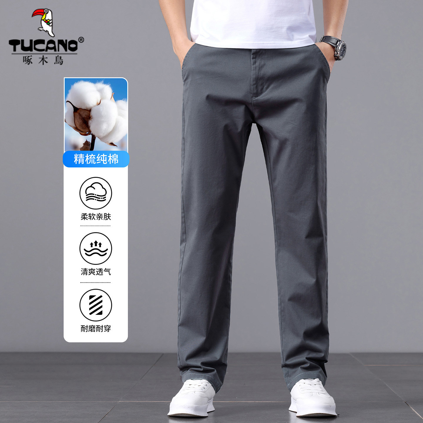 啄木鸟2026春季新款男士纯棉休闲裤宽松直筒透气商务休闲百搭长裤
