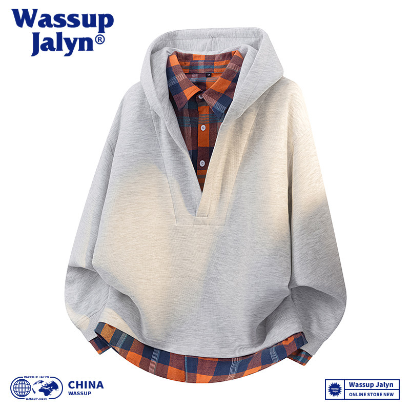 淘宝WASSUP JALYN美式假两件华夫格连帽卫衣休闲春秋2026新款上衣男款