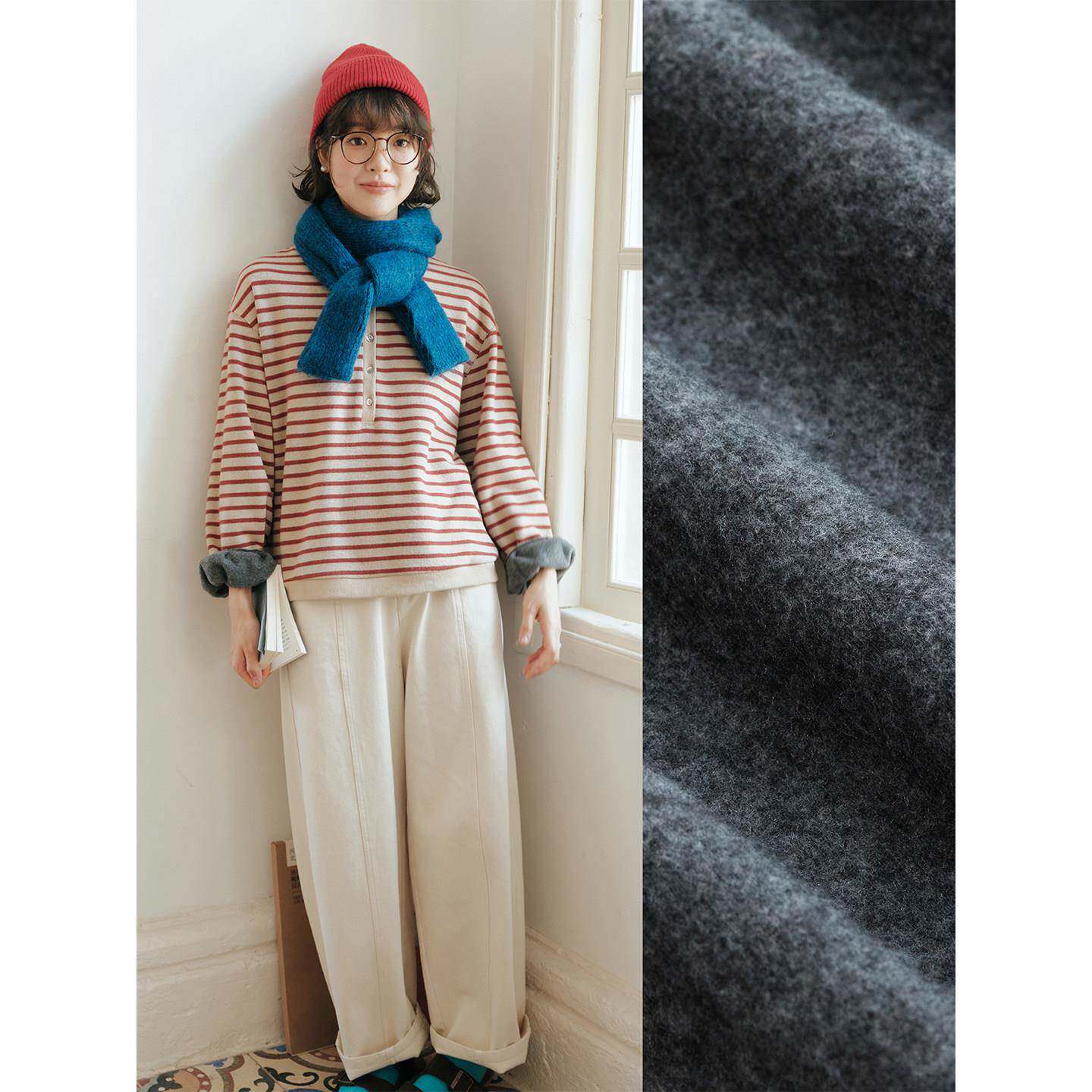 说与山听「静屿」圆领条纹卫衣加绒加厚无帽上衣冬季女休闲61018