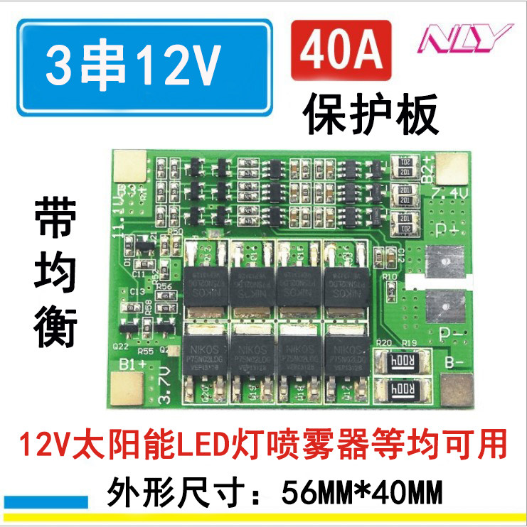 三串12V锂电池保护板逆变器路灯喷雾器三元锂3节11.1V电动玩具车