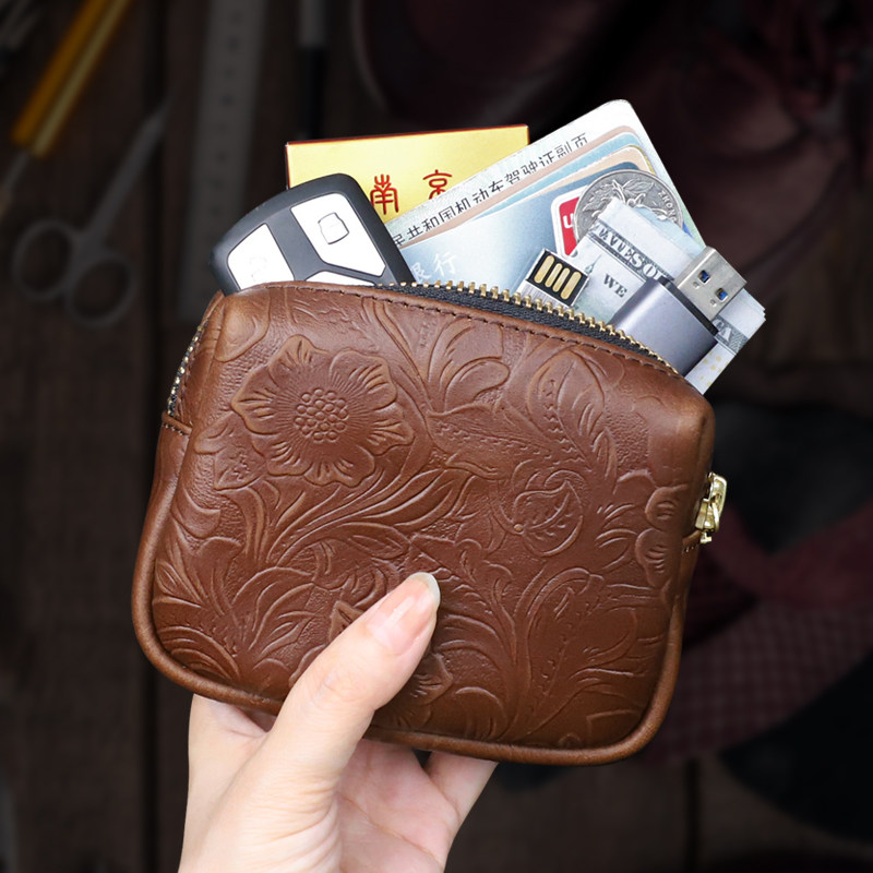 复古手工真皮零钱包男女头层牛皮简约钥匙包多功能收纳包手拿包潮