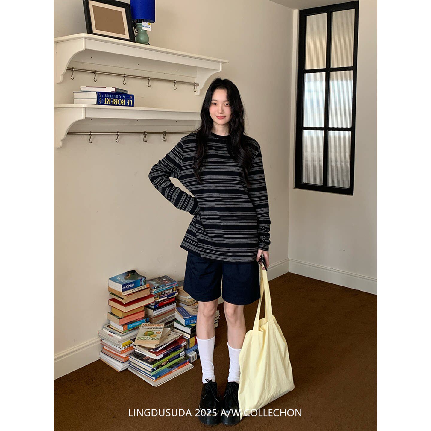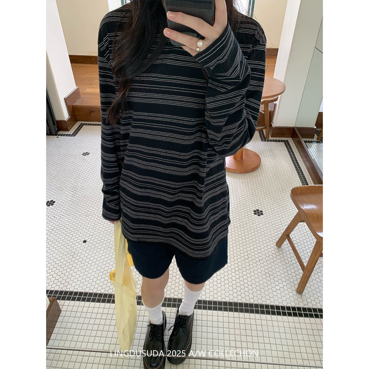 淘宝零度苏打 圆领条纹宽松长袖内搭t恤女韩系慵懒风休闲打底上衣秋冬