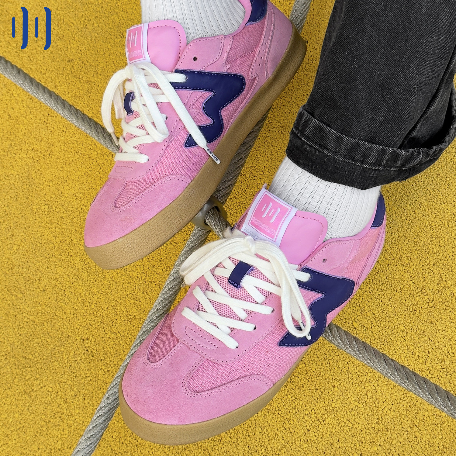 --------------------- 顽刻ollieskate粉蓝拼色翻毛皮生胶底W系列男女国潮德训滑板鞋 【原售价】378元 【现售价】189元 【推荐理由】
