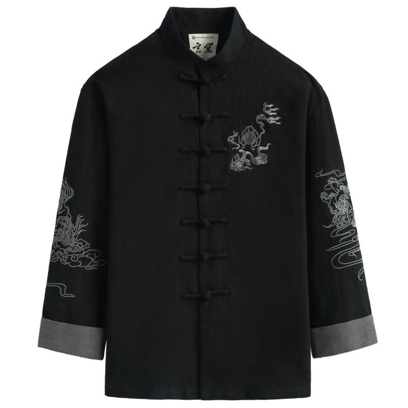 中国风男装春秋季刺绣唐装男套装手工盘扣大码国潮男士长袖外套男