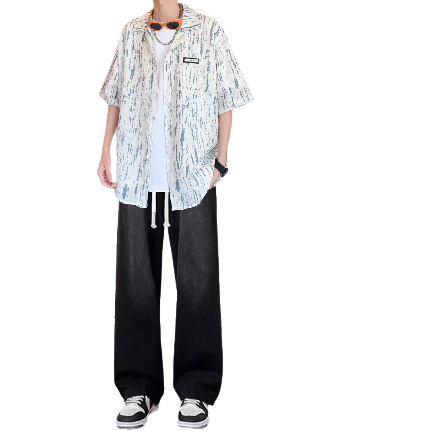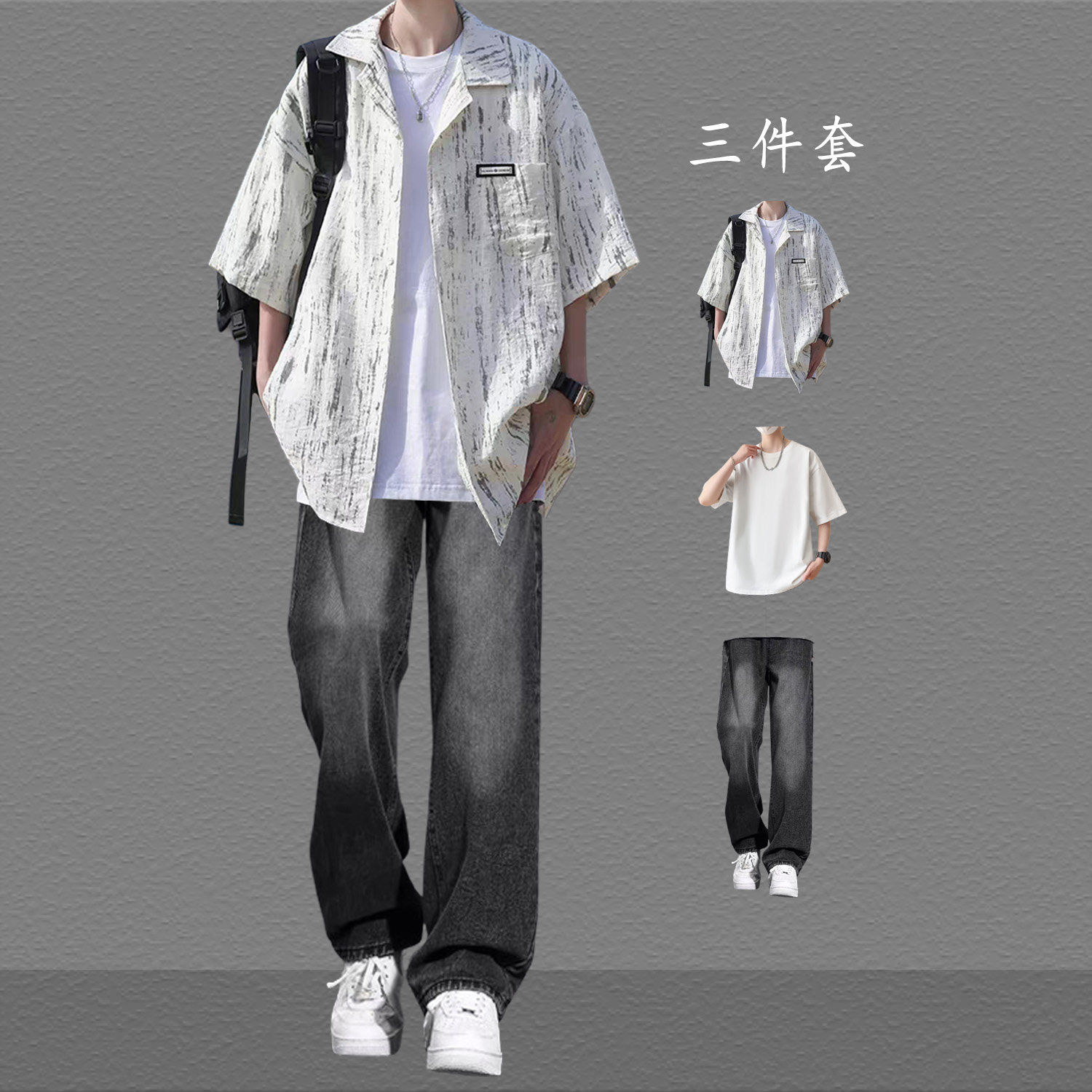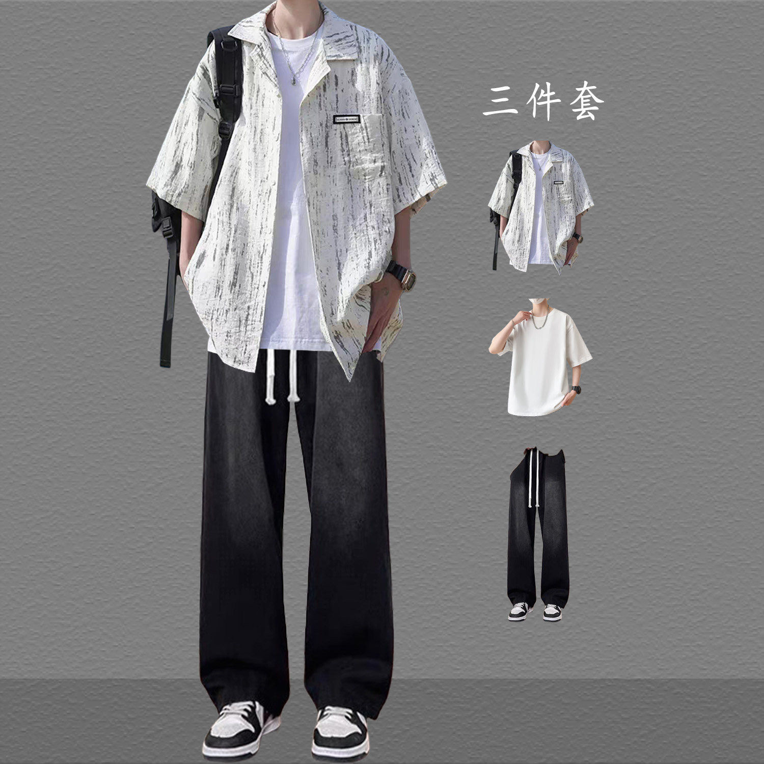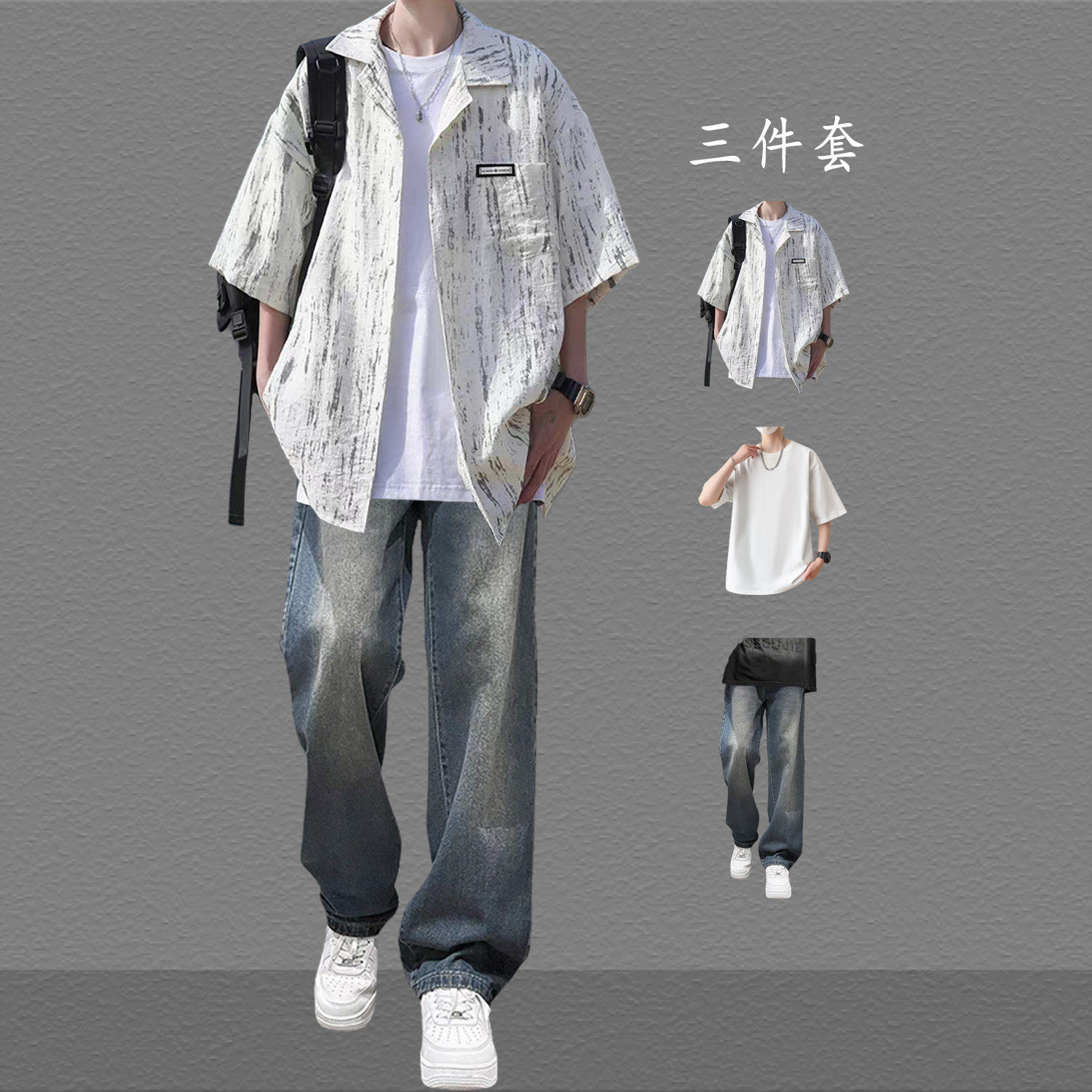 bentidea 夏季潮扎染短袖衬衫三件套男青少年学生衬衣帅气穿搭