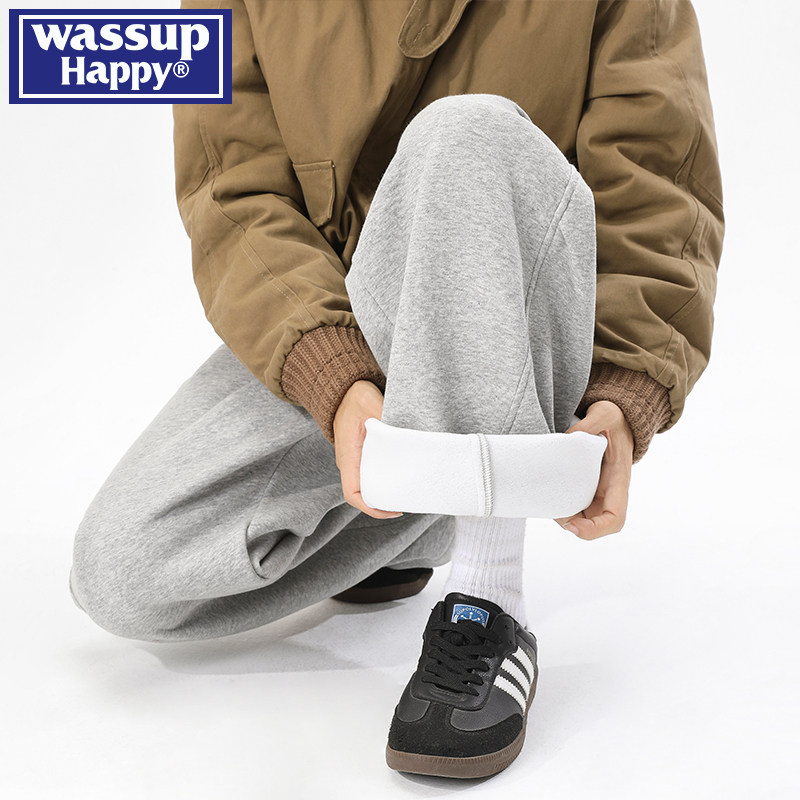 wassup happy美式褶皱卫裤男士春秋季2026新款重磅休闲弯刀长裤子