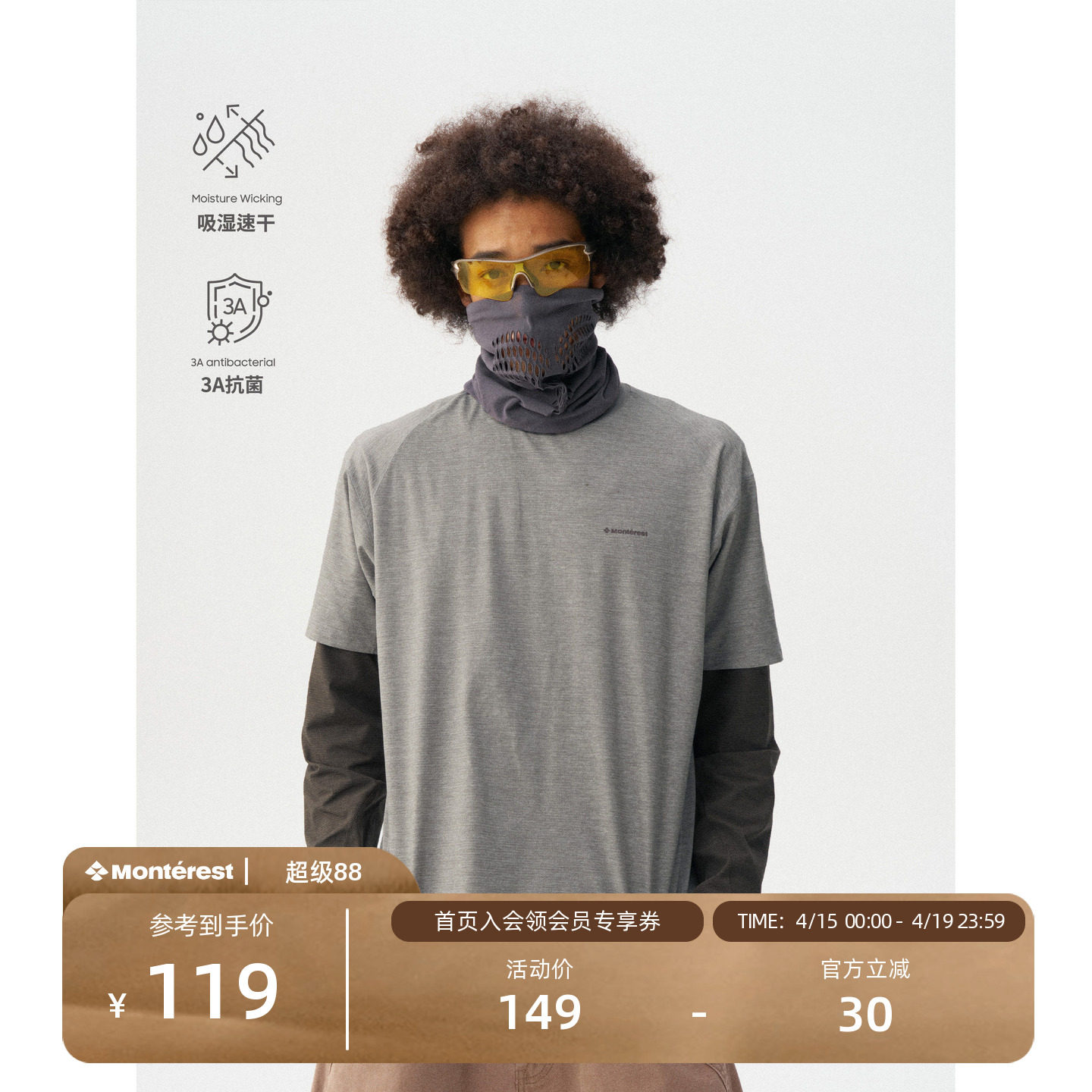 --------------------- 瞬时山野Monterest户外3A抗菌吸湿速干阳离子透气运动LOGO短袖T恤 【原售价】149元 【现售价】119元 【推荐理由】