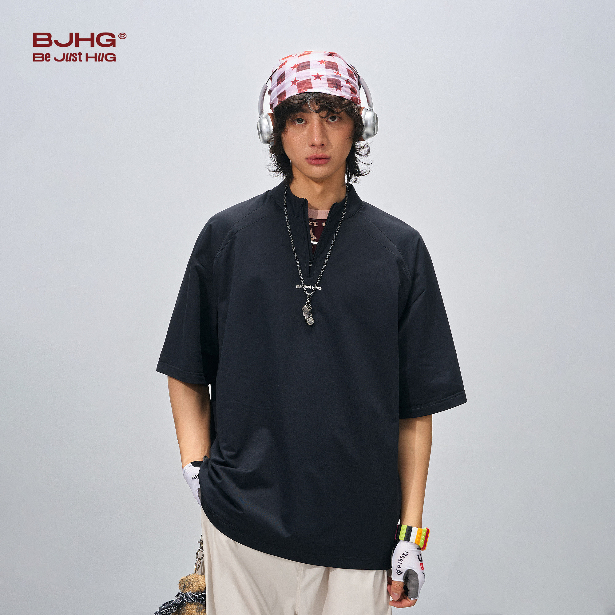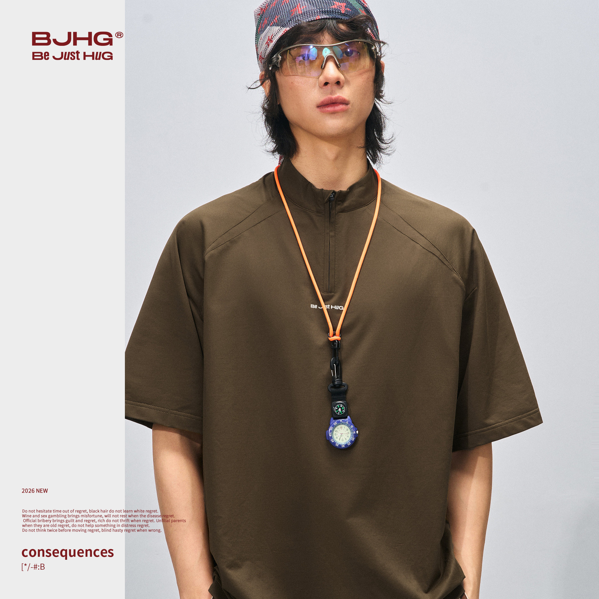 BJHG不计后果 半拉链立领t恤短袖男款夏季凉感速干运动polo衫半袖