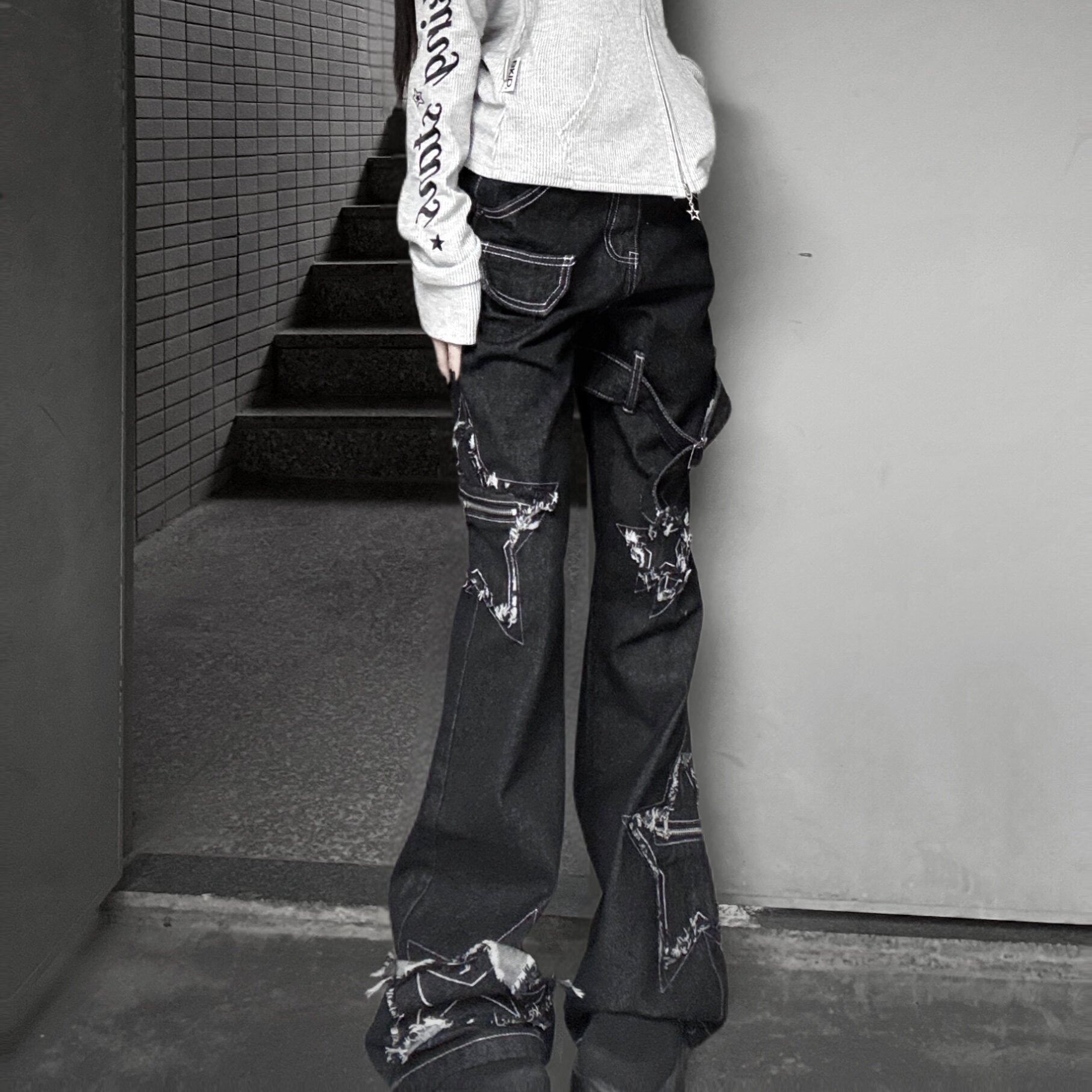 --------------------- 梁拌泡菜破界美式复古星星水洗做旧休闲裤宽松阔腿微喇亚文化长裤 【原售价】269元 【现售价】236元 【推荐理由】