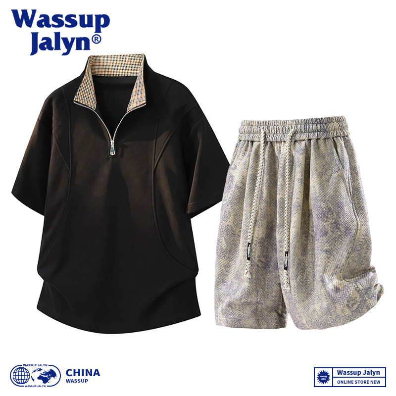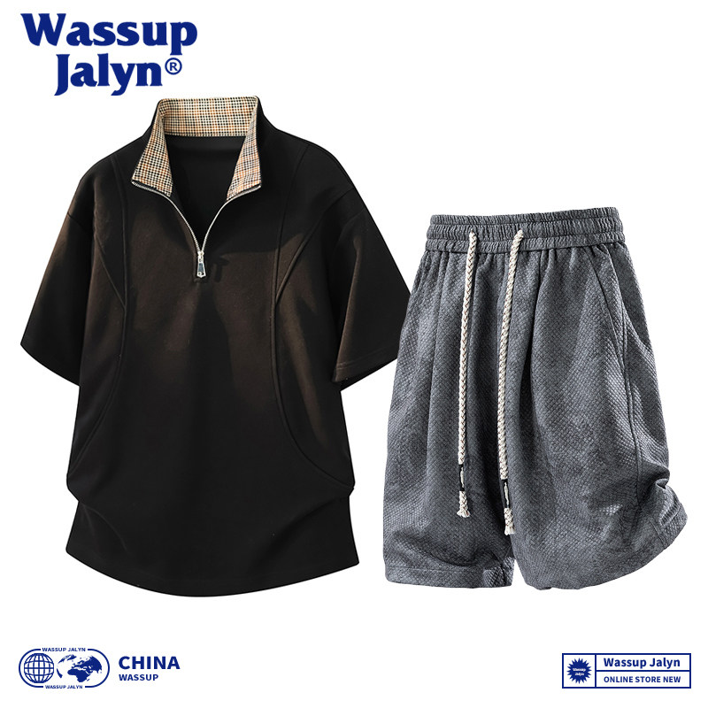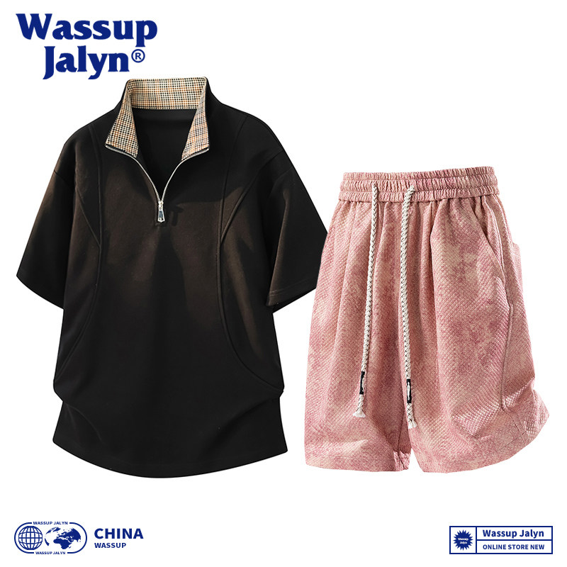 WASSUP JALYN美式短袖短裤套装男款夏季潮痞帅宽松休闲运动套装男