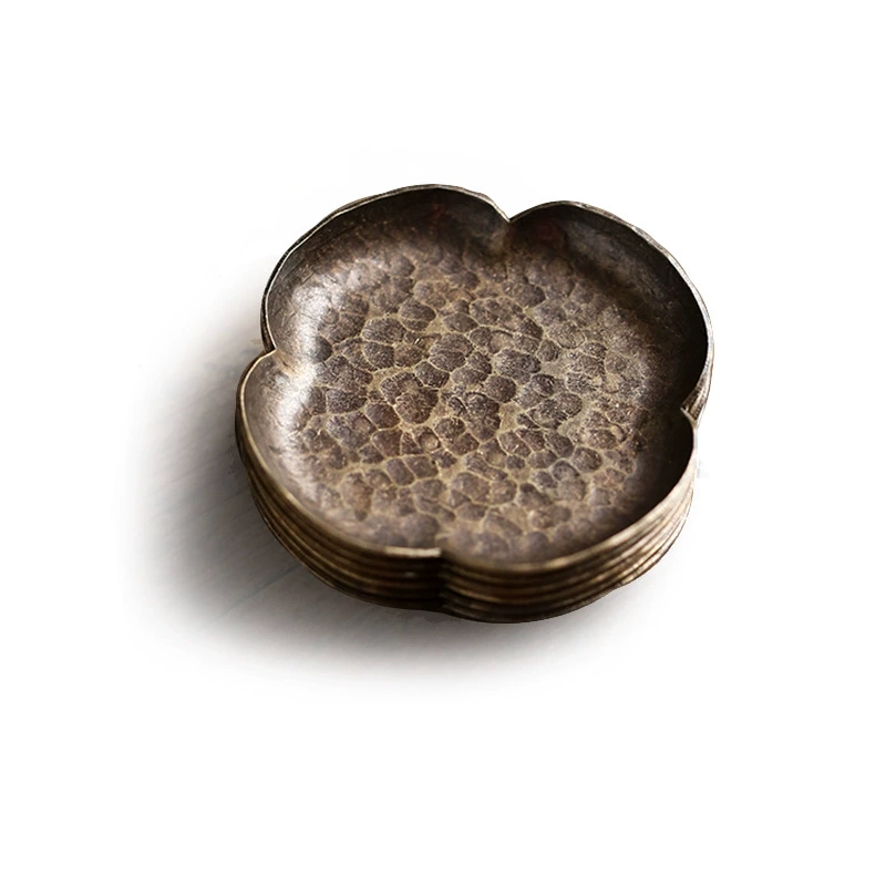 淘宝纯手工仿铜杯垫 日式小号隔热海棠杯垫 锤纹茶托茶道配件金属仿古