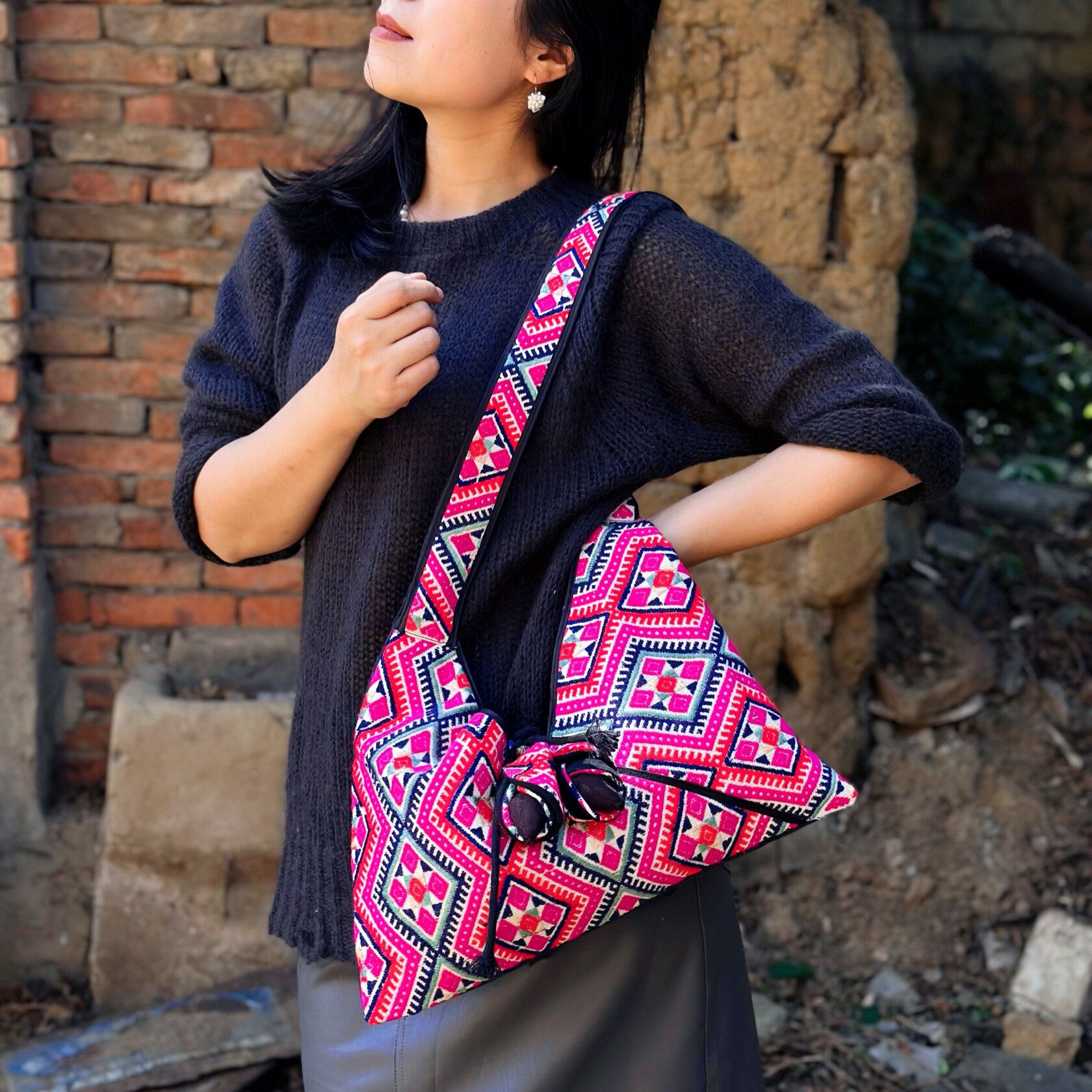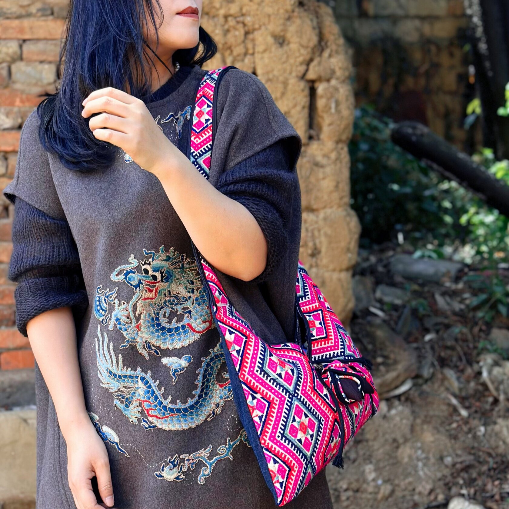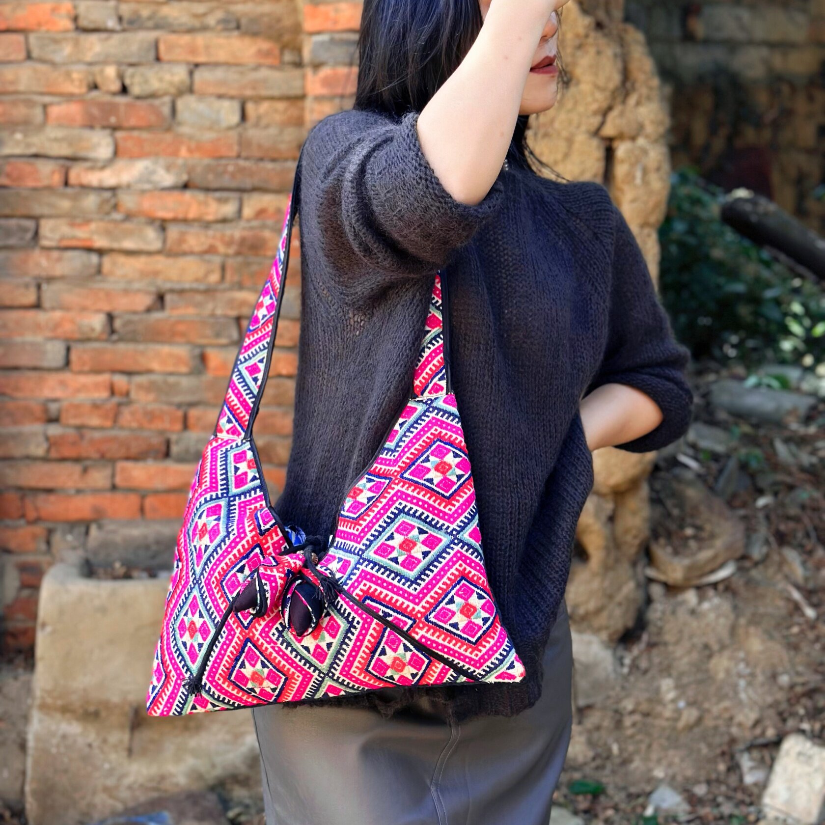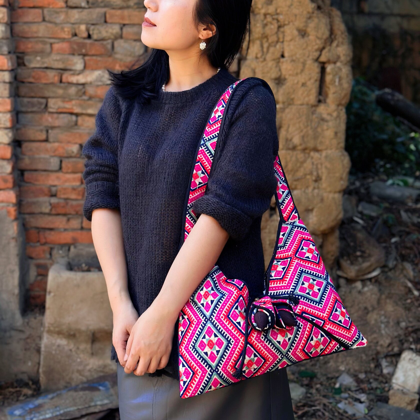 淘宝文艺复古老绣织锦单肩包 民族风织锦斜挎三角包 民族风刺绣包
