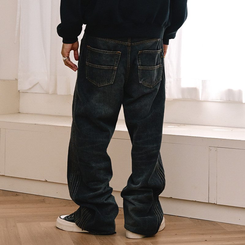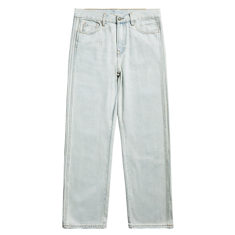 Remedy 秋季新款国潮宽松直筒休闲长裤美式潮牌条纹水洗牛仔裤男