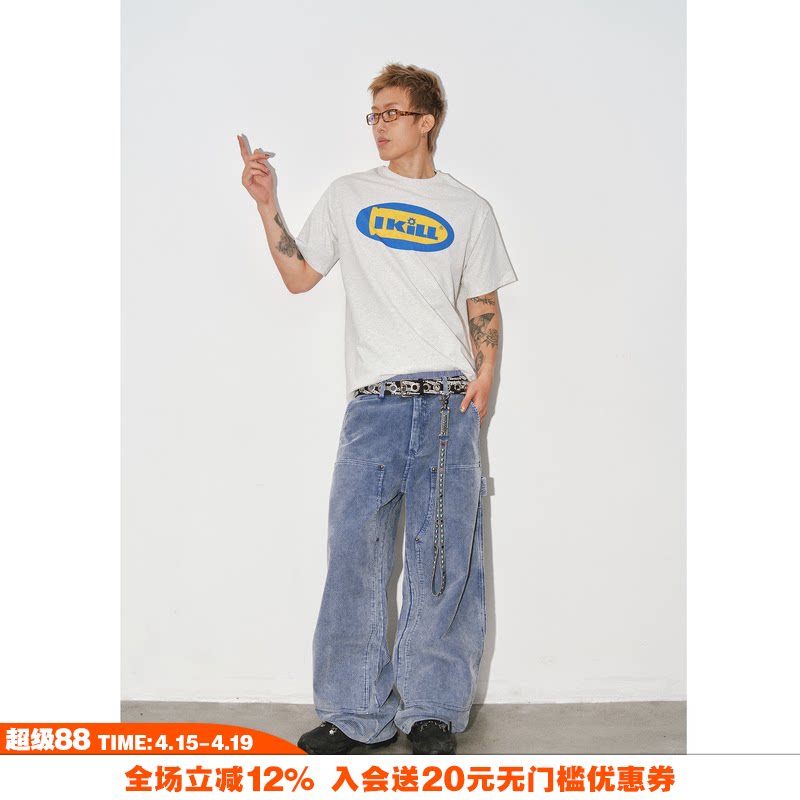 NOVACAM 美式街头夏季vintage恶搞创意LOGO印花短袖男国潮字母T恤