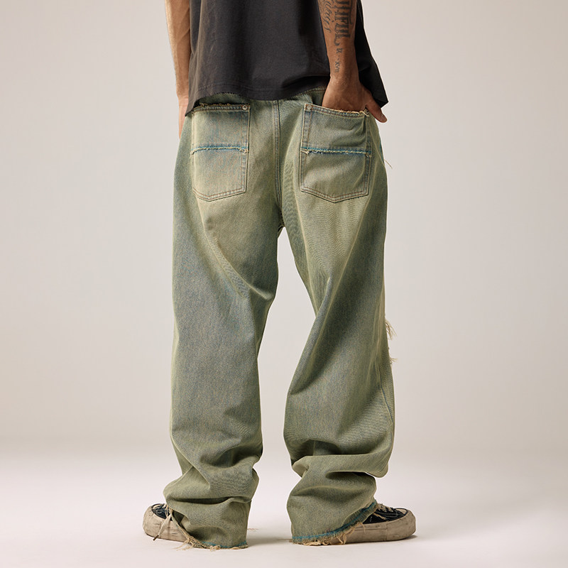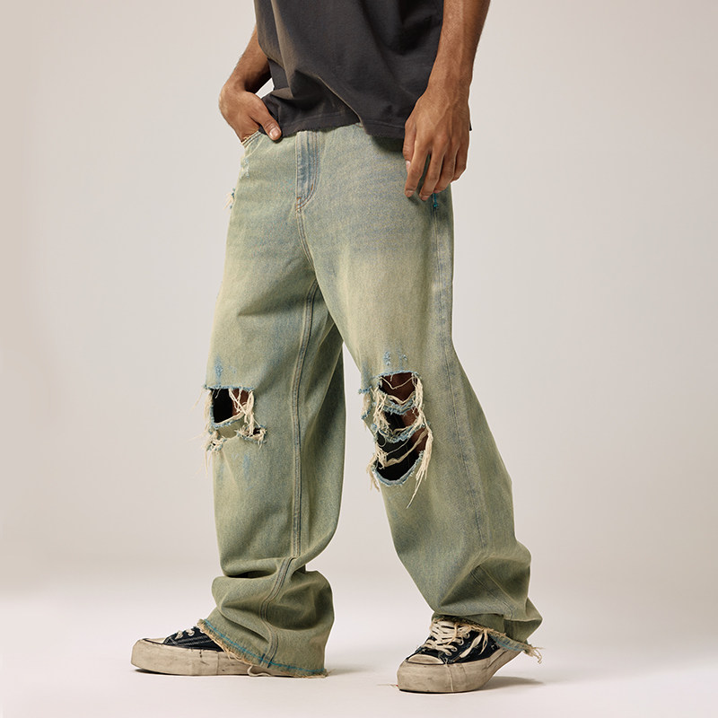 Remedy国潮破洞宽松直筒阔腿休闲长裤夏季美式街头潮牌牛仔裤男女