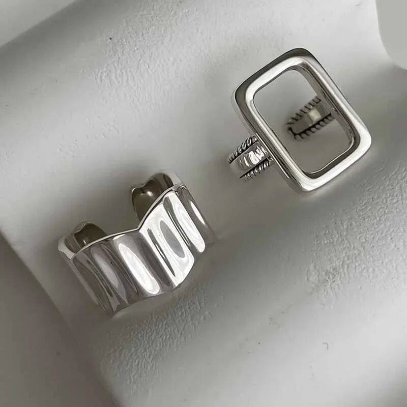 Silver Color Metal Rings Set Elegant Adjustable Rings for