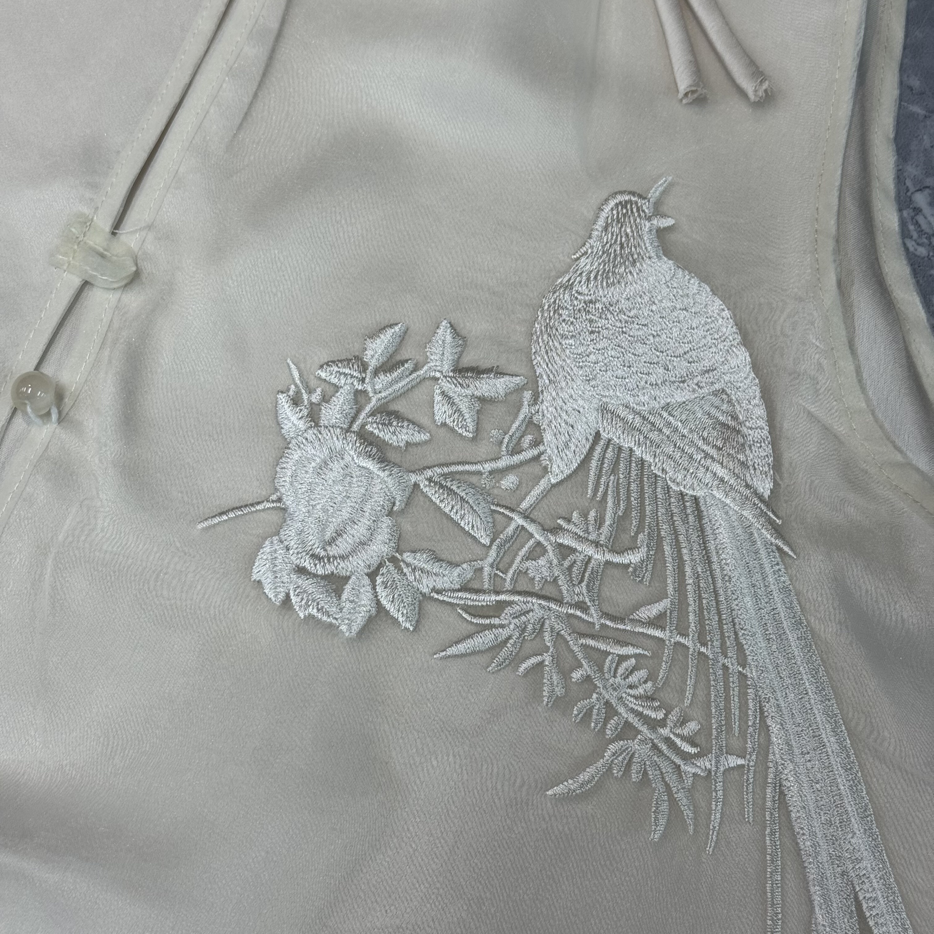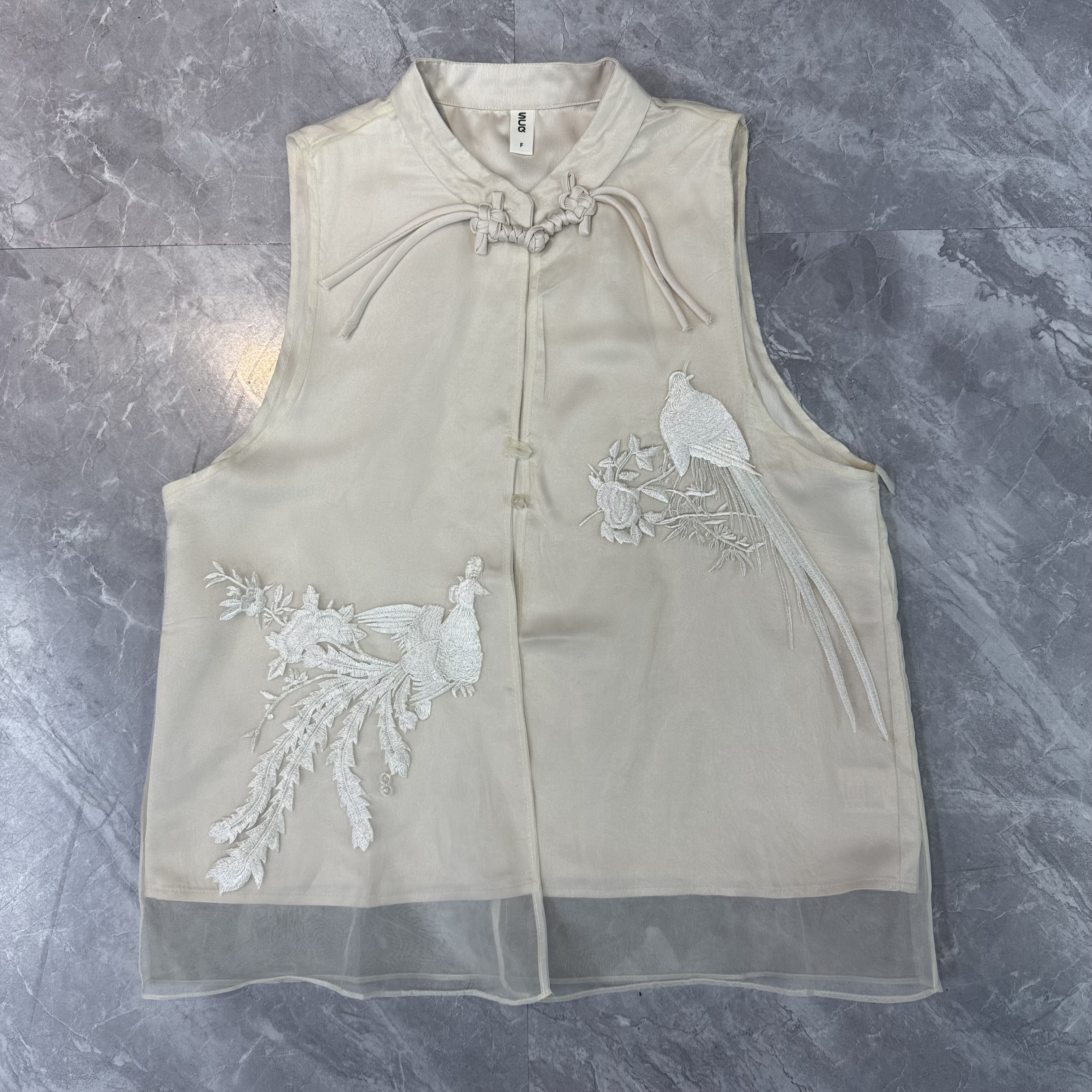 淘宝4.2七号… 新中式斜襟盘扣欧根纱刺绣马甲新中式立领无袖背心上衣