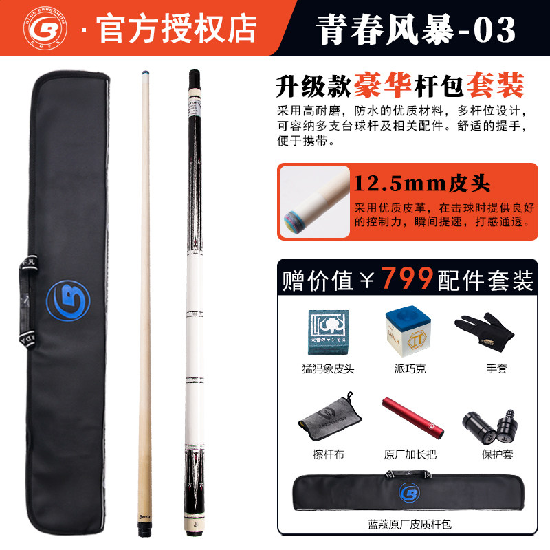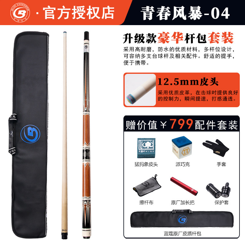 台球杆蓝蔻青春风暴球杆大头杆十大品牌男生桌球杆专业高端台球杆