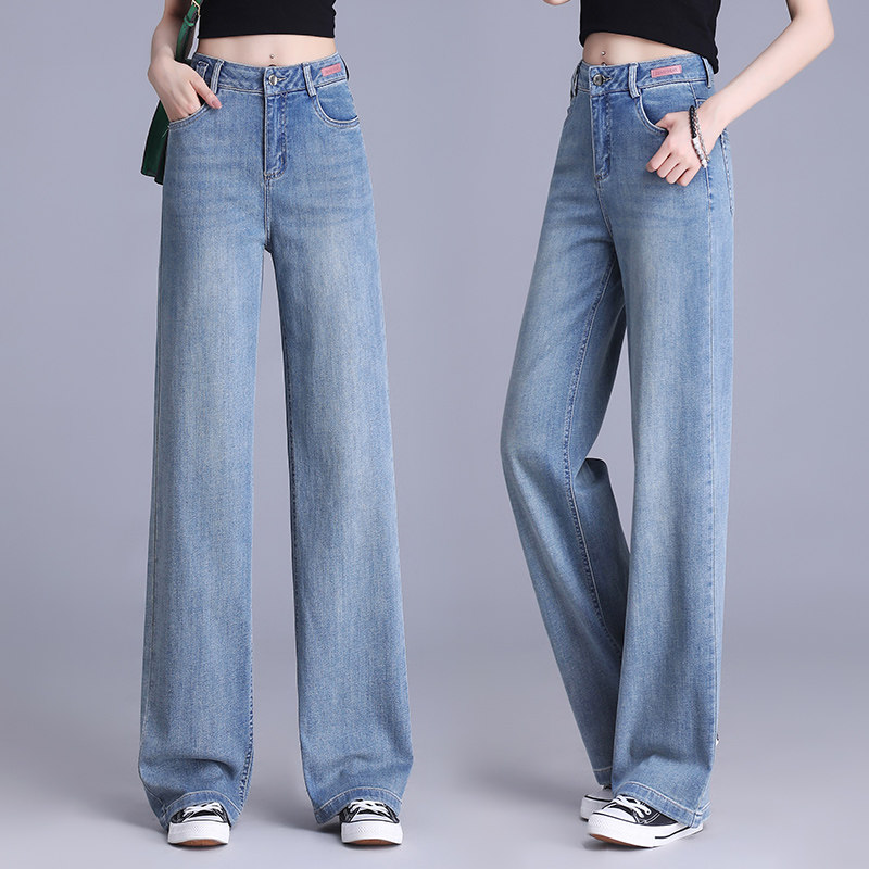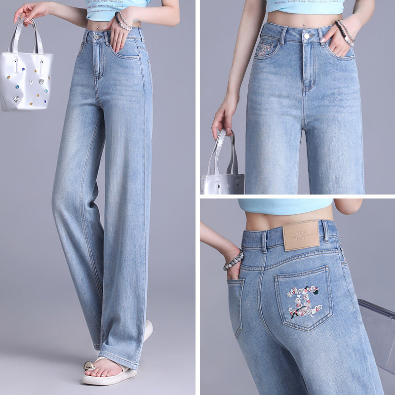 逸阳2026新款女裤春夏品牌牛仔裤高腰时尚垂顺透气长裤窄版阔腿裤