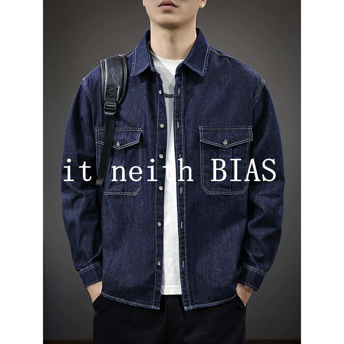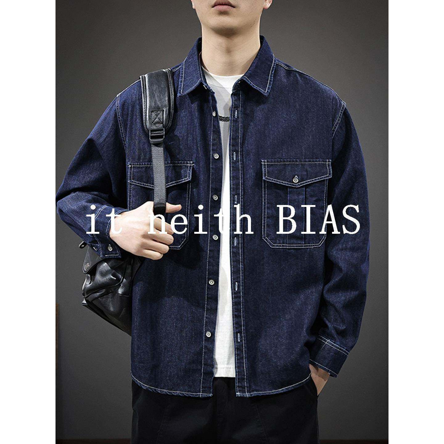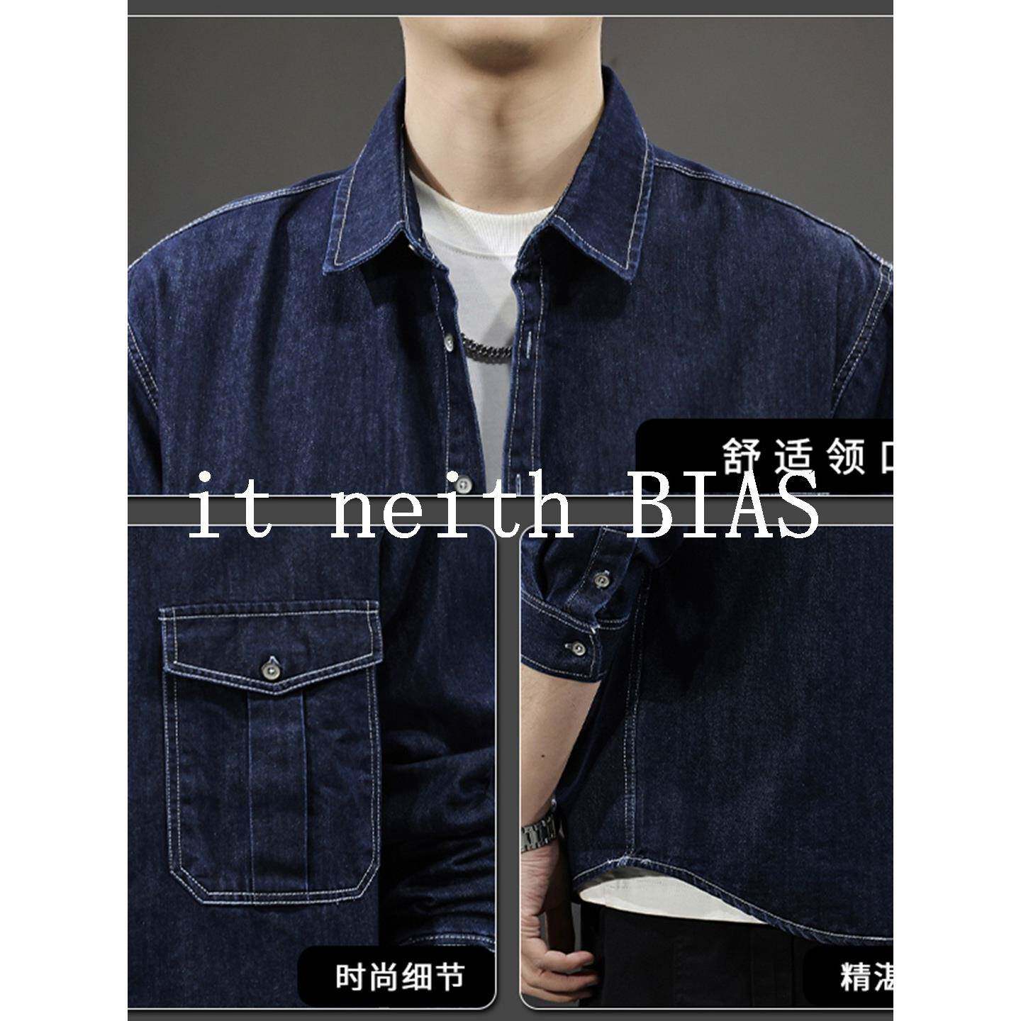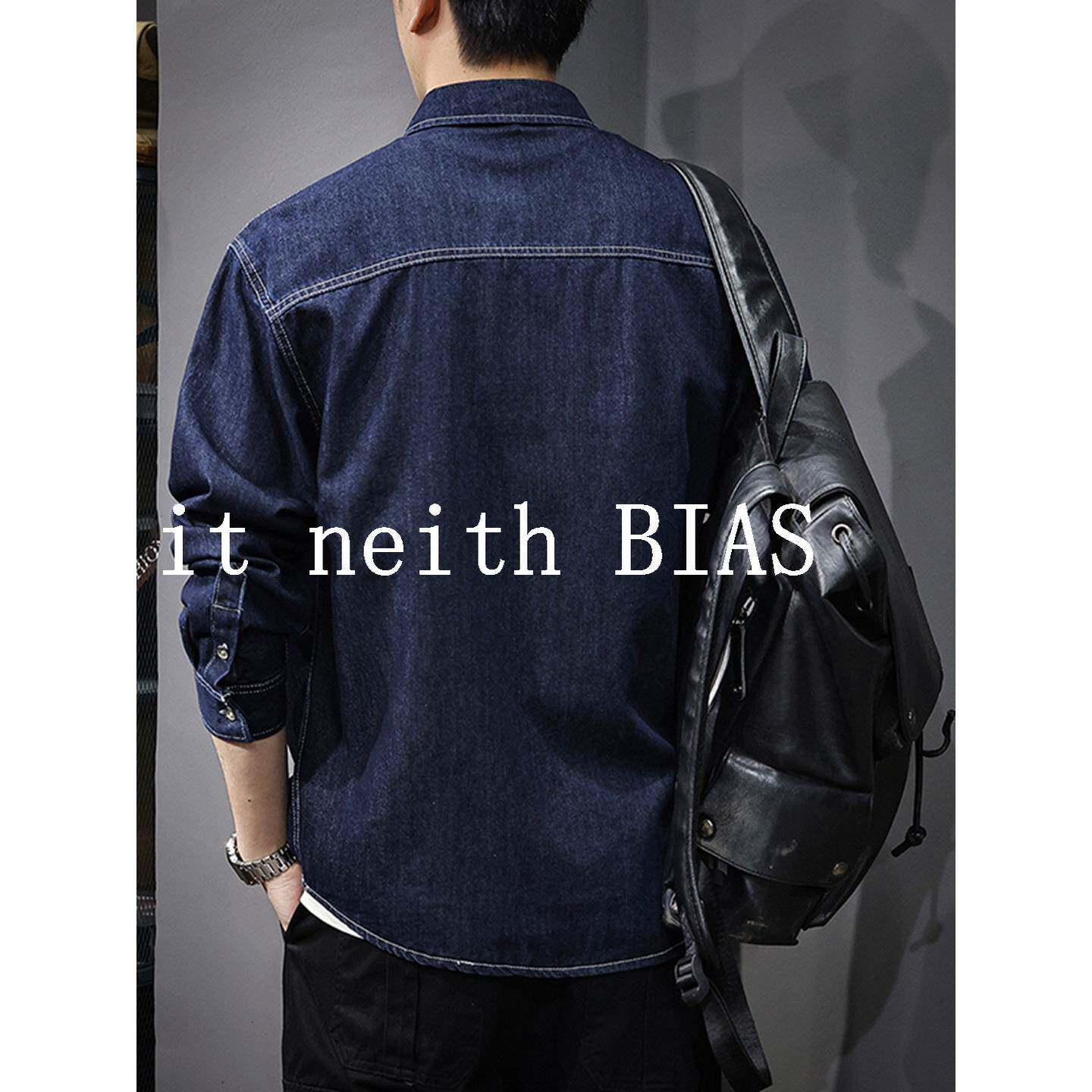 it neith BIAS2025秋新款辑明线覆古牛仔衬衫男宽松纯棉工装衬衣