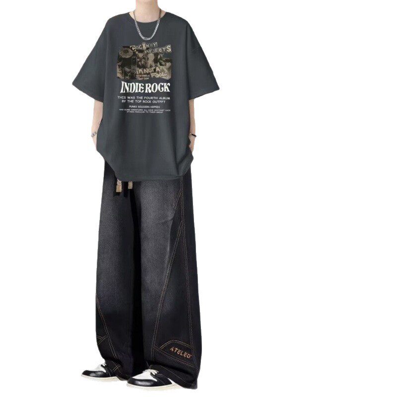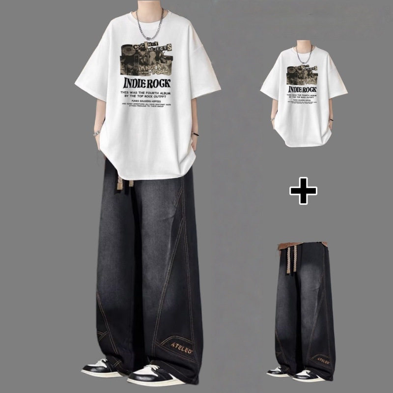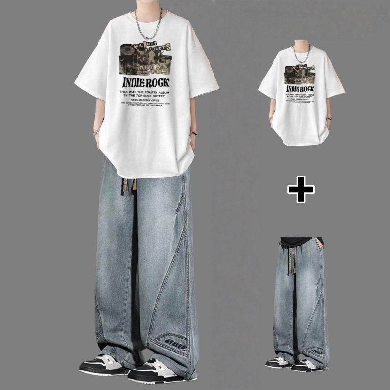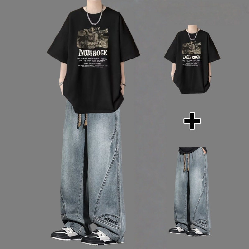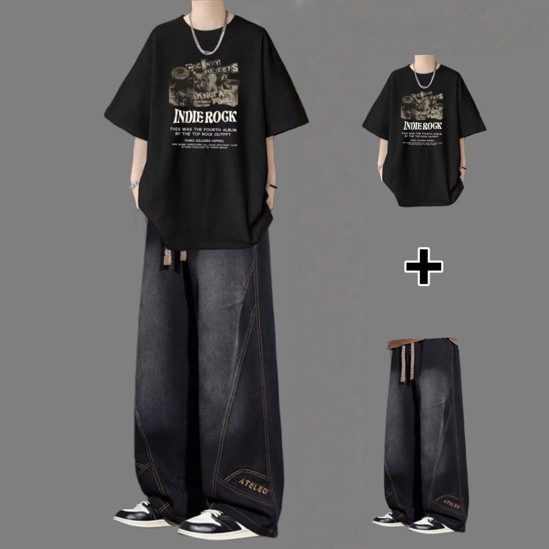 BENTIDEA 短袖t恤套装男夏季青少年痞帅男装一套搭配高街牛仔裤