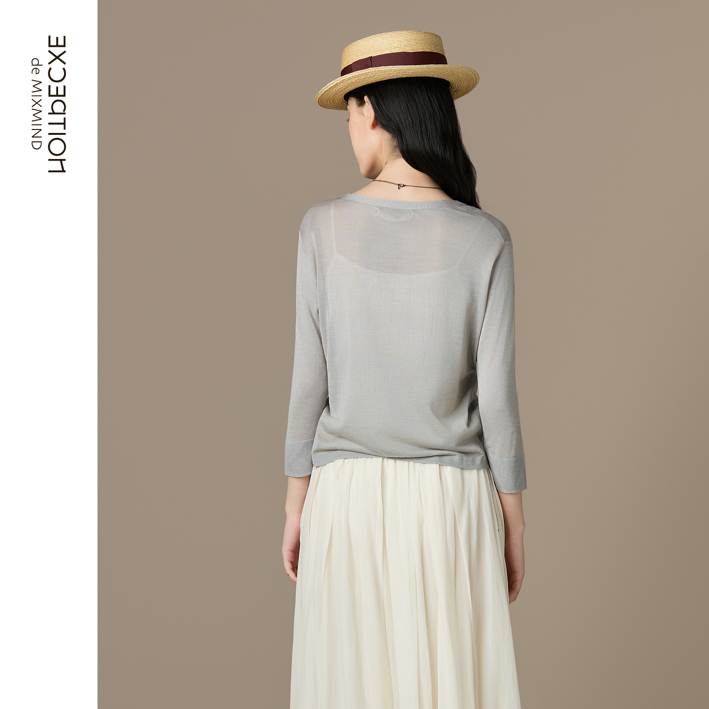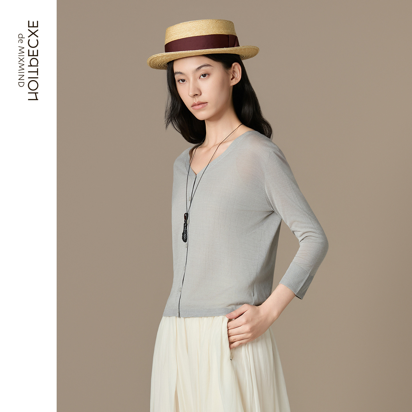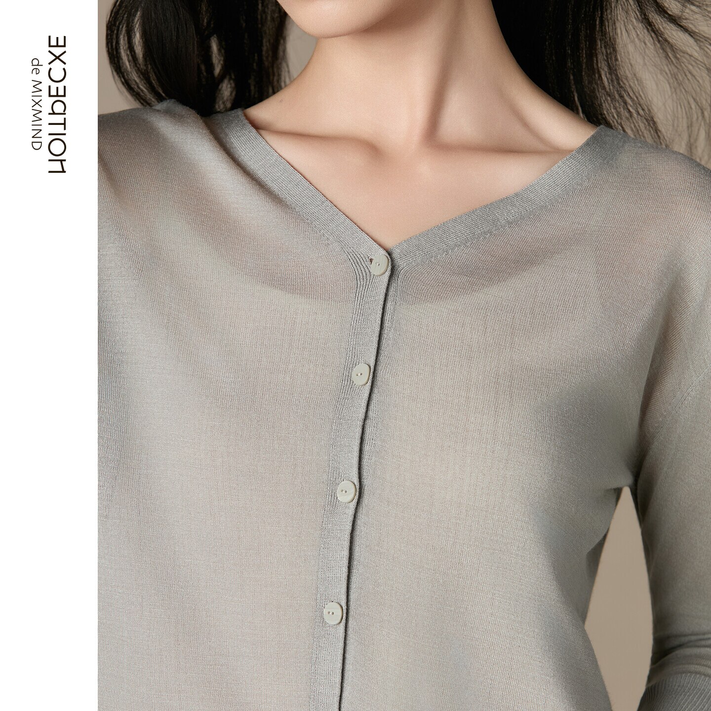 EXCEPTION例外女装柞蚕丝透气百搭高级感通勤薄款V领小针织开衫春