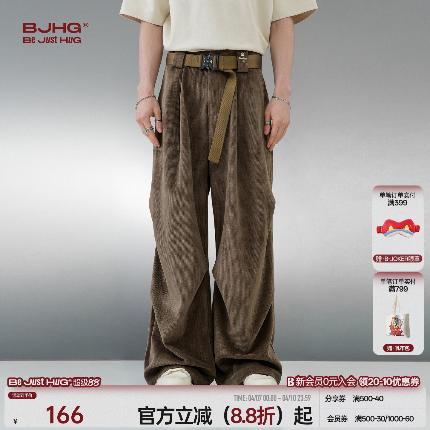 --------------------- BJHG不计后果美式休闲工装裤子男款春季宽松阔腿直筒长裤伞兵裤女 【原售价】189元 【现售价】166元 【推荐理由】