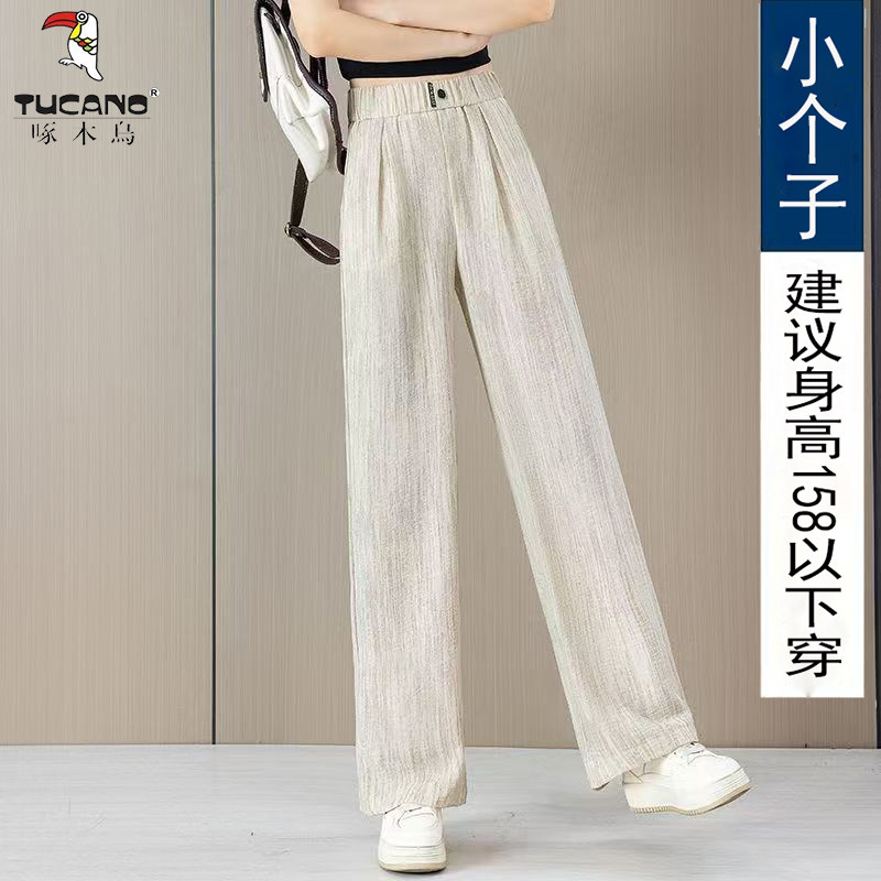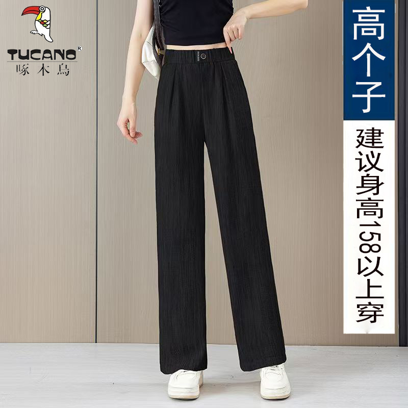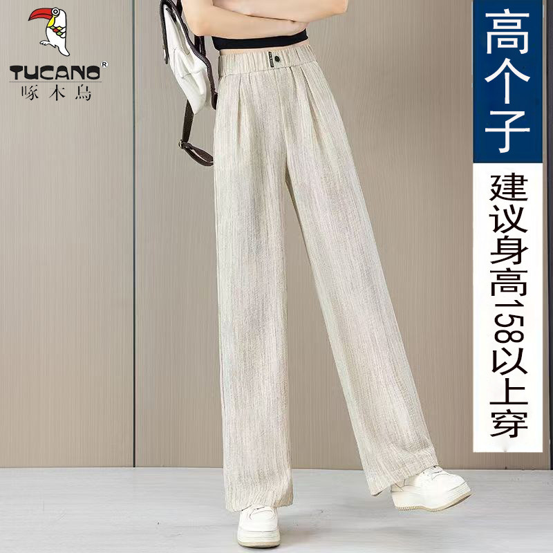 啄木鸟冰丝阔腿休闲裤女士夏季新款长裤今年流行松紧腰宽松直筒裤