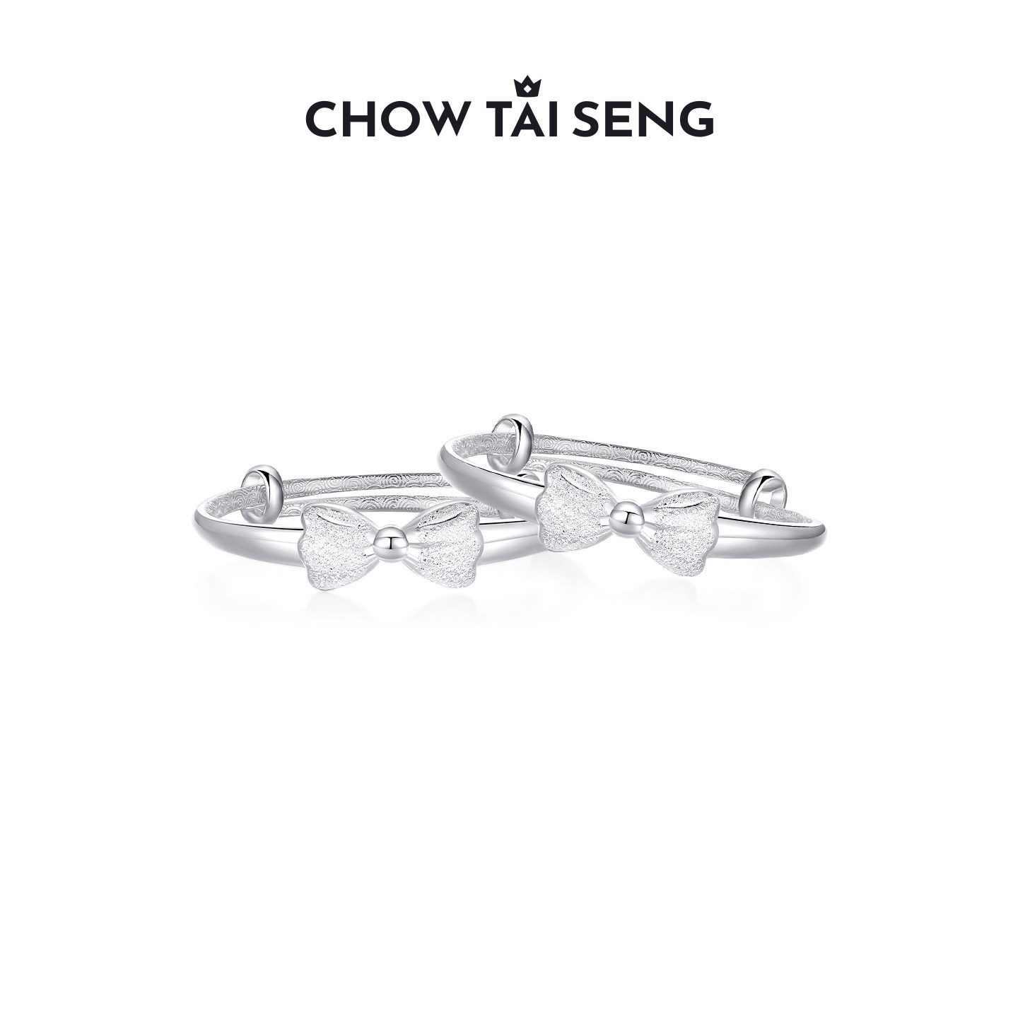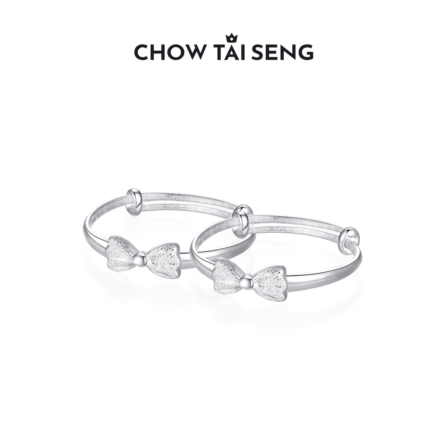 淘宝周大生纯银手镯婴儿蝴蝶结银镯宝宝镯足银镯手环小孩满月周岁礼物